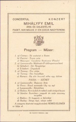 Program concert la restaurantul Dacia din Făget, județul Timiș, 1928