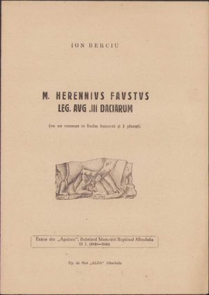 M Herennus Faustus Leg Aug III Daciarum de Ion Berciu, fără an, Alba Iulia