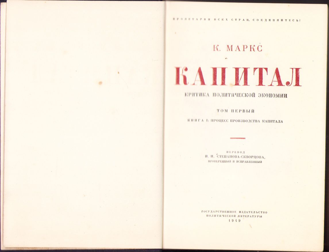Капитал (Capitalul) de Karl Marx, 1949, volumul I, în limba rusă.
