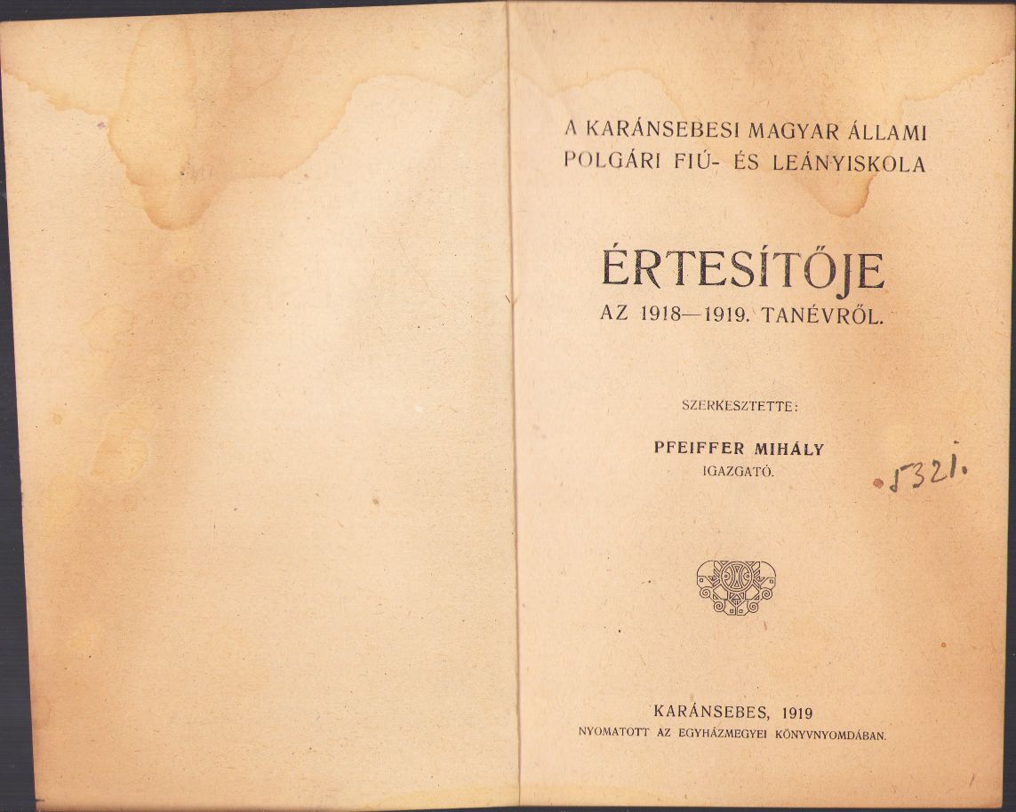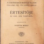 A karánsebesi magyar állami polgári fiú és leányiskola értésitője az 1918-1919 tanévről, szerkesztette Pfeiffer Mihály, Caransebeș.