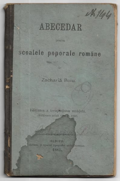 Abecedar pentru scoalele poporale române de Zachariă Boiu, 1881, Sibiu, Editura și tipariul tipografiei archidiecesane.