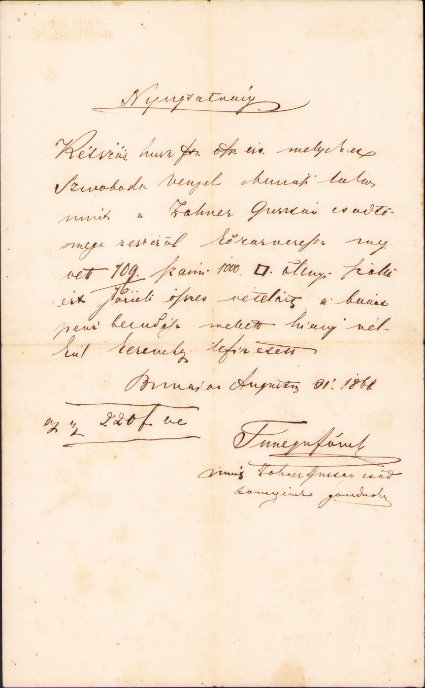 Act, 1868, Buziaș, cu timbru sec avocat Tunega Jozsef.
