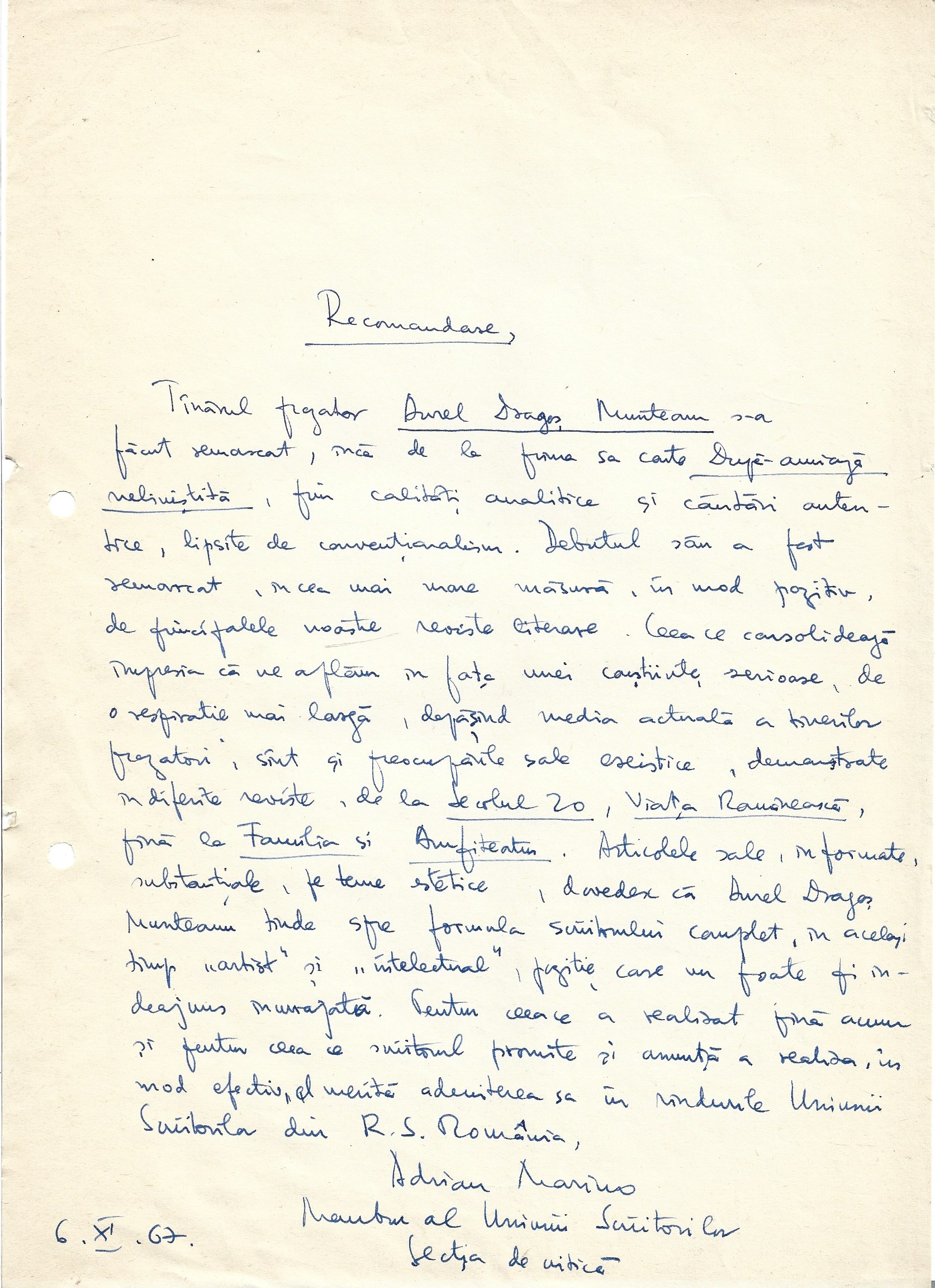 Adrian Marino (n. 1921, Iași – d. 2005, Cluj-Napoca), eseist, critic, istoric și teoretician literar. Deținut politic în timpul regimului comunist, fiind arestat și aruncat în închisoare în anul 1949, iar ulterior deportat în Bărăgan până în anul 1963. A fost cel mai tradus critic literar român. A scris prima enciclopedie românească literară completă, în 7 volume.