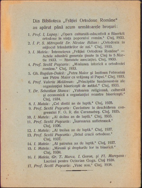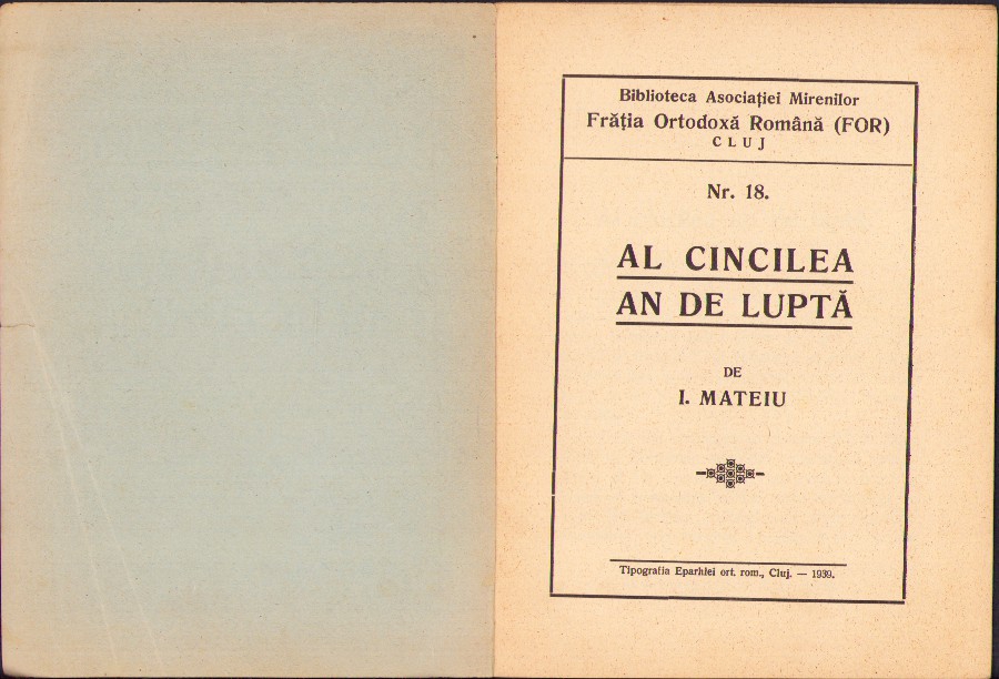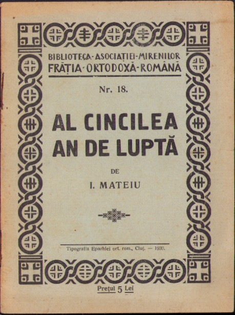 / Al cincilea an de luptă de I Mateiu, 1939, Cluj, Biblioteca Asociației mirenilor Frăția Ortodoxă Română