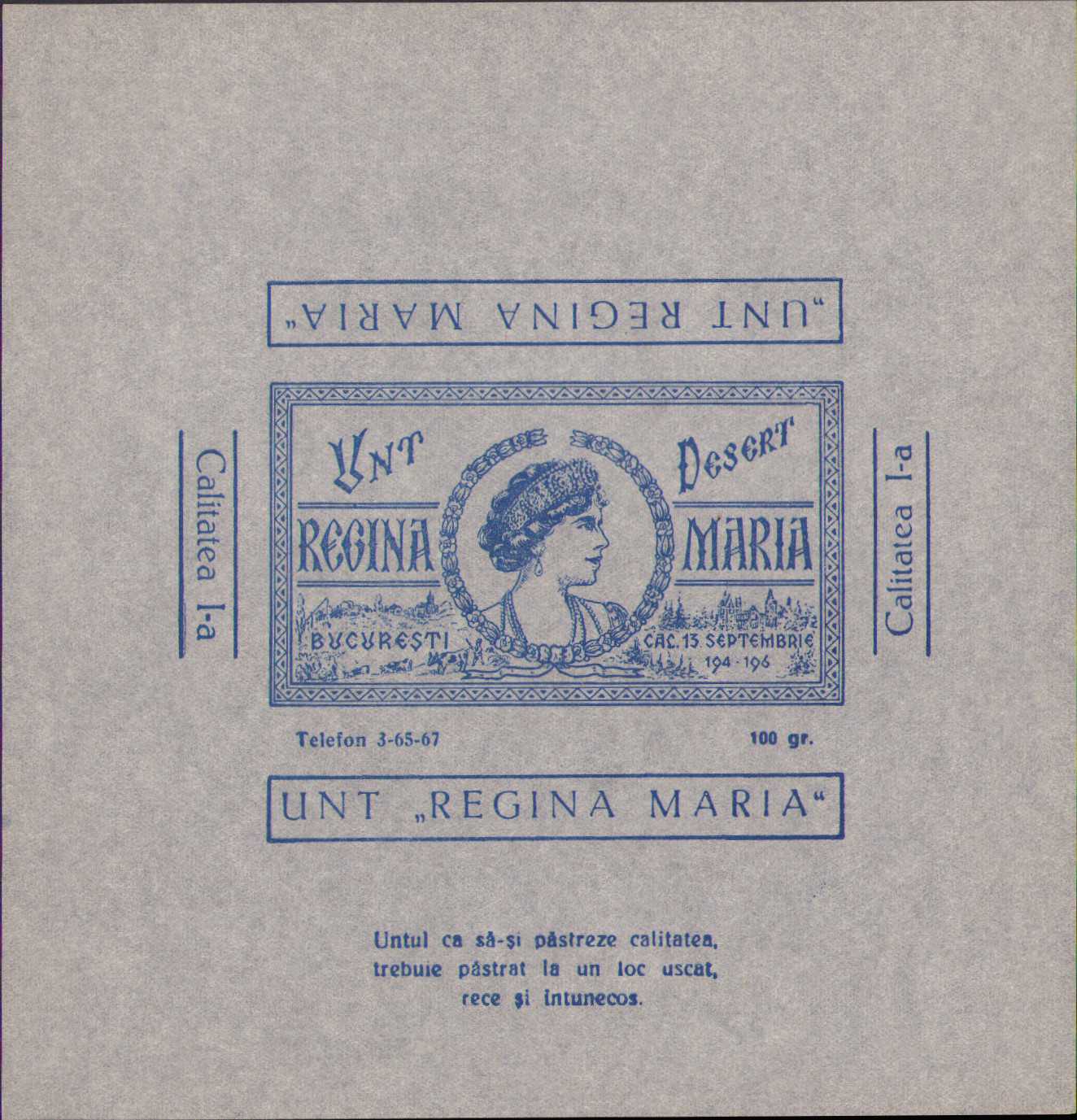 Ambalaj de unt desert „Regina Maria”, calitatea I, 100 gr., interbelic