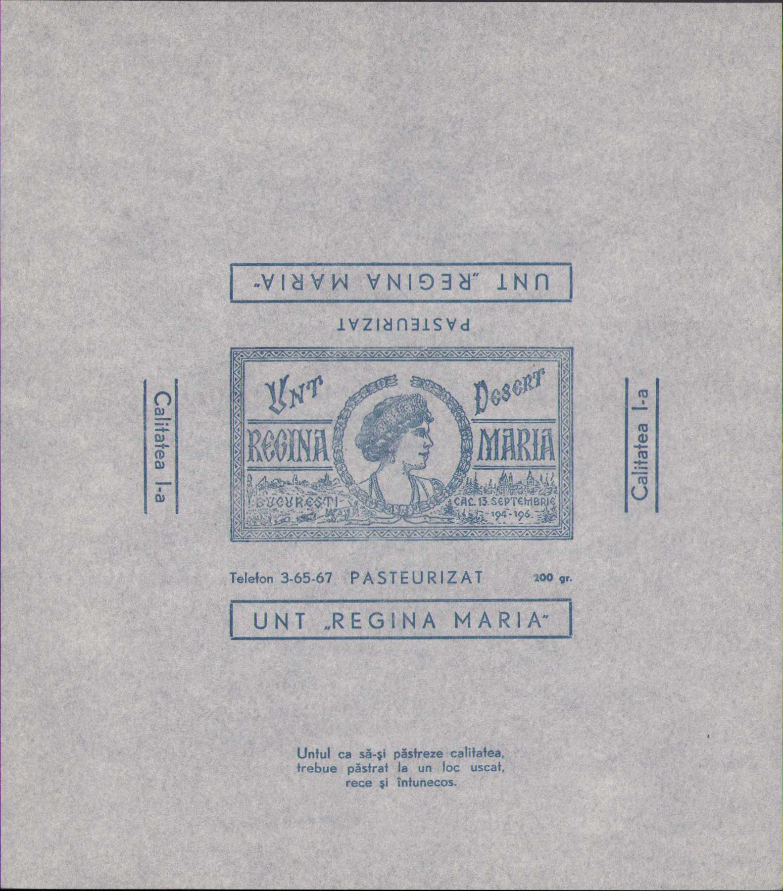 Ambalaj de unt desert „Regina Maria”, calitatea I, 200 gr., interbelic