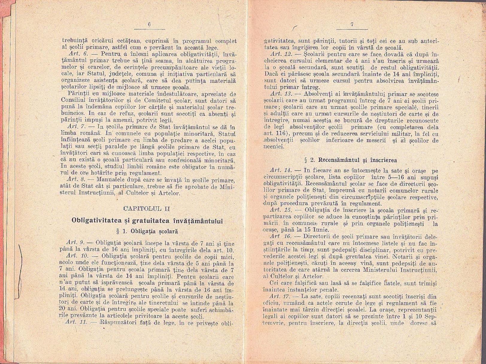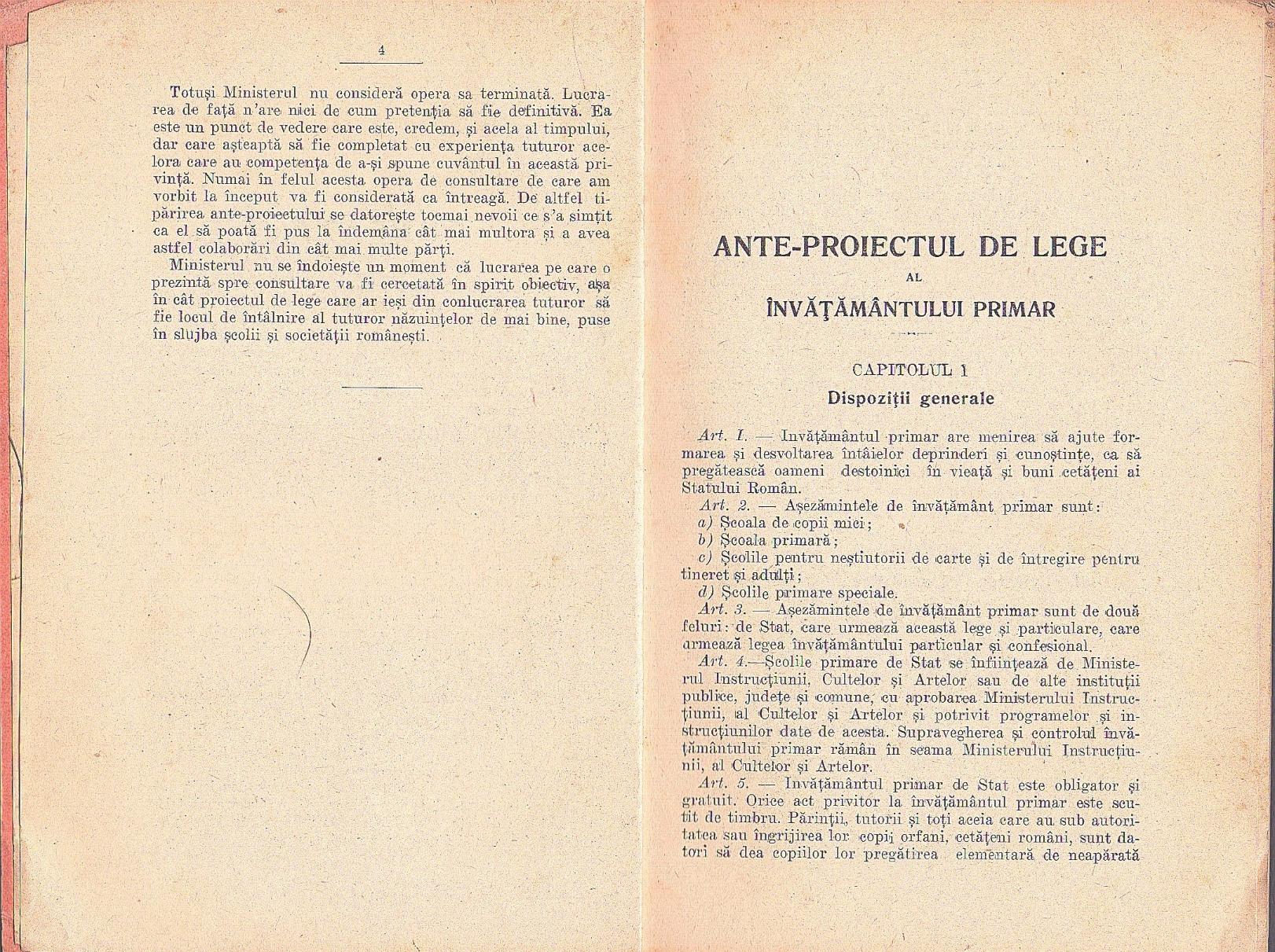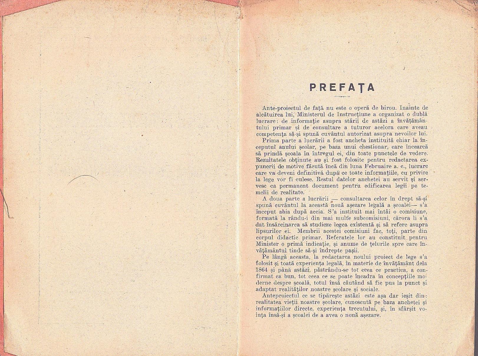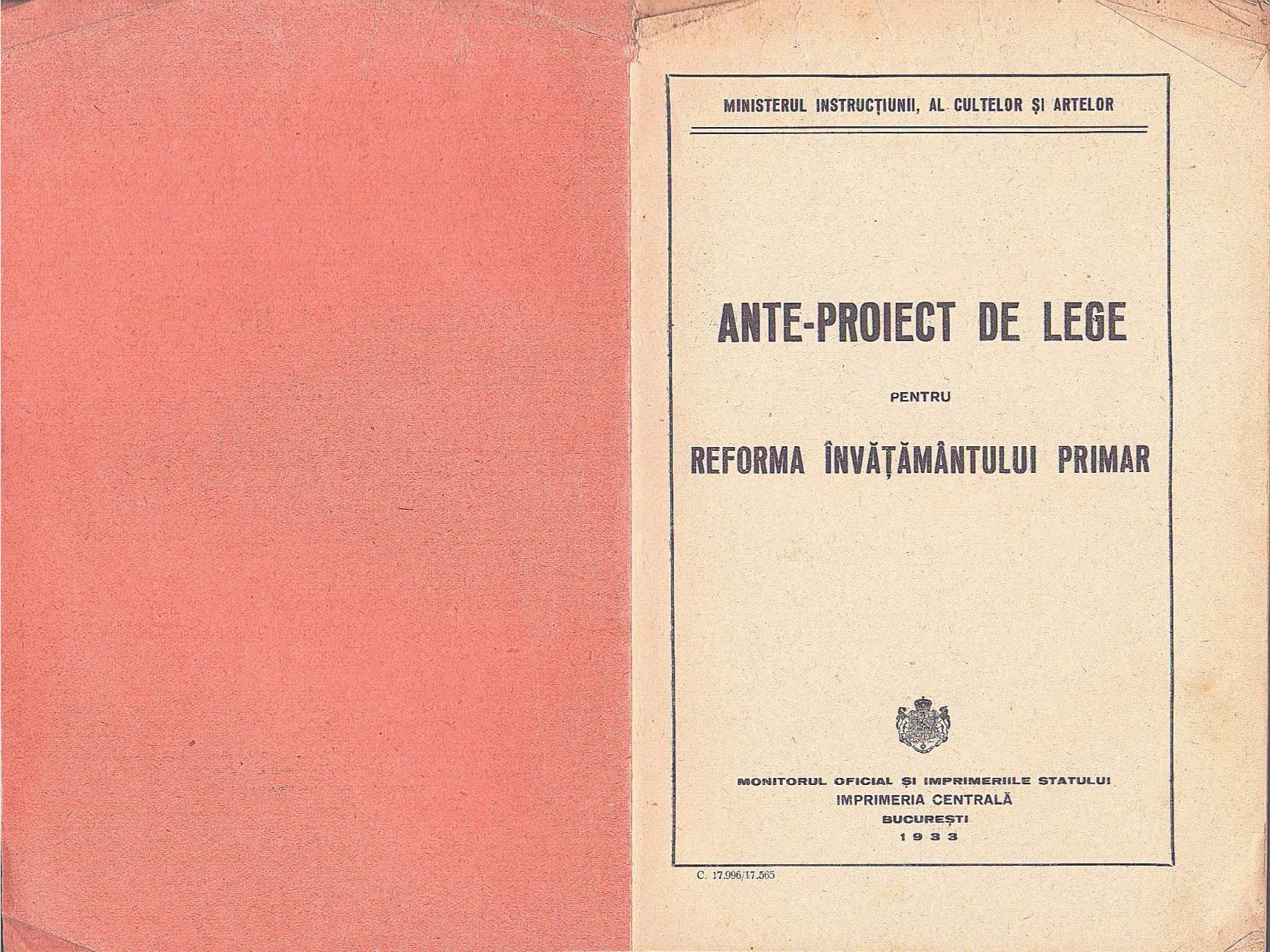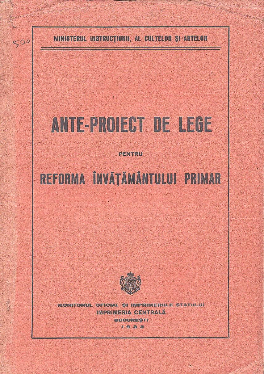 Ante-proiect de lege pentru reforma învățământului primar, 1933.
