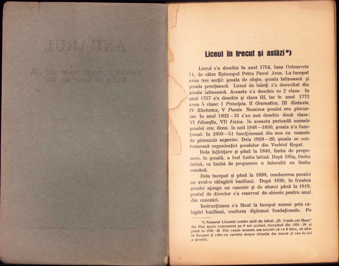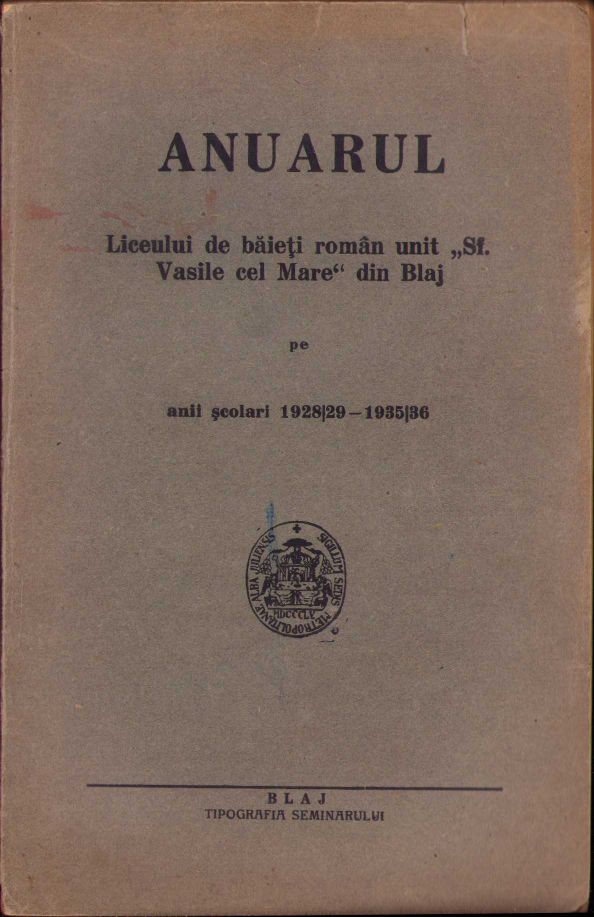 Anuarul Liceului de băieți român unit Sf Vasile cel Mare din Blaj pe anii 1928/1929 – 1935/1936, fără an, Blaj, Tipografia Seminarului.