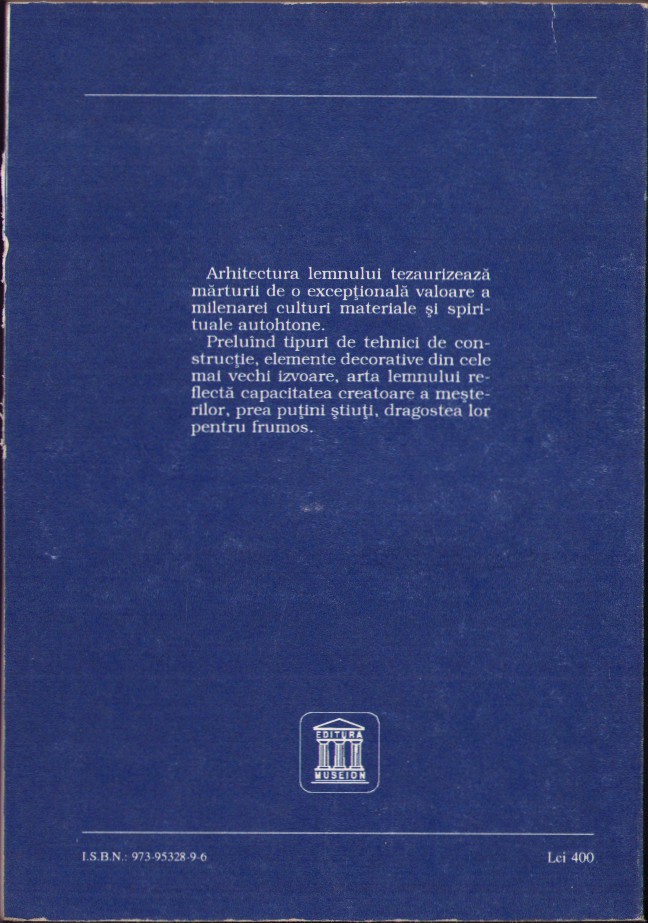 Arhitectura de lemn din Transilvania, județele Alba, Mureș și Harghita de Ioana Cristache-Panait, 1993.