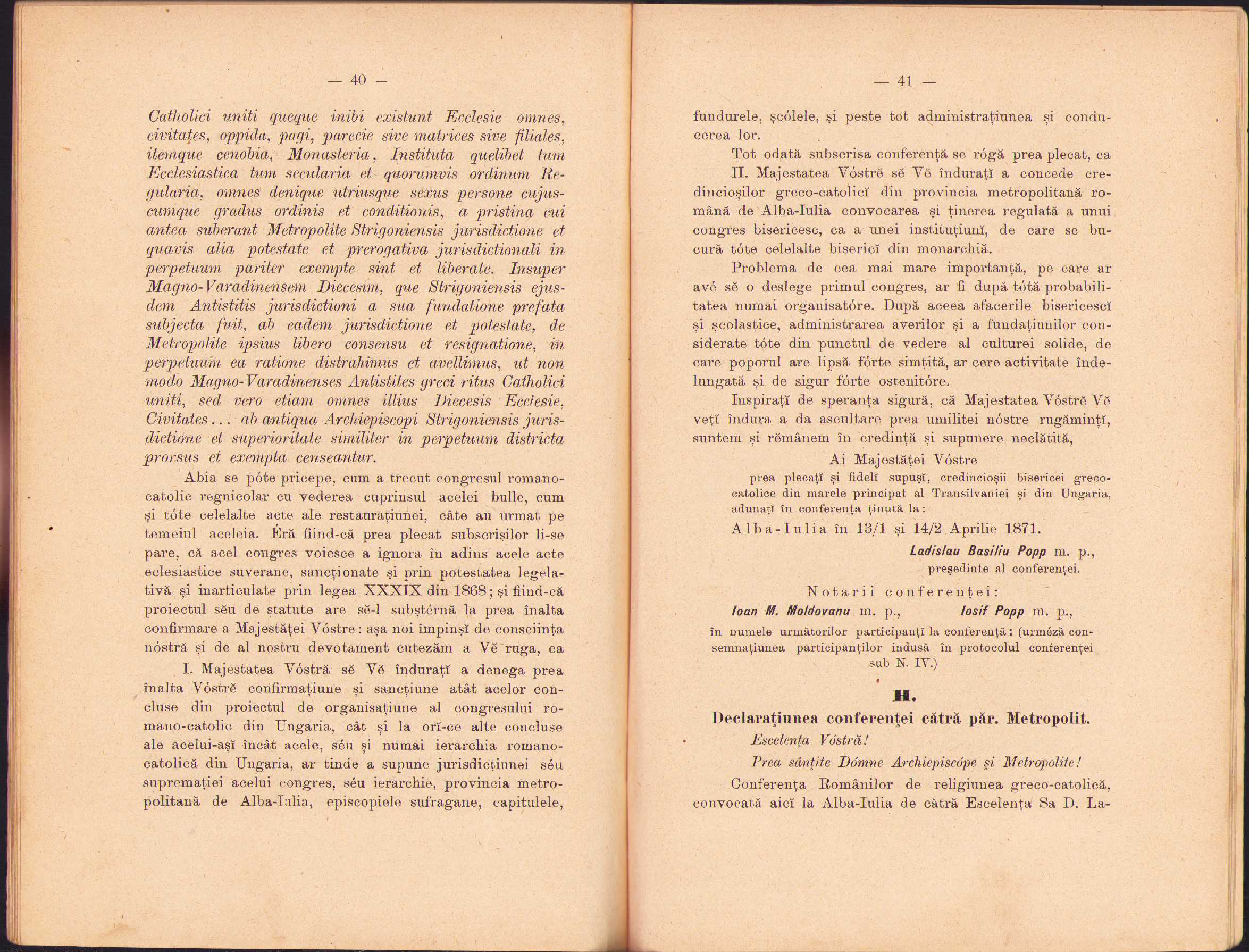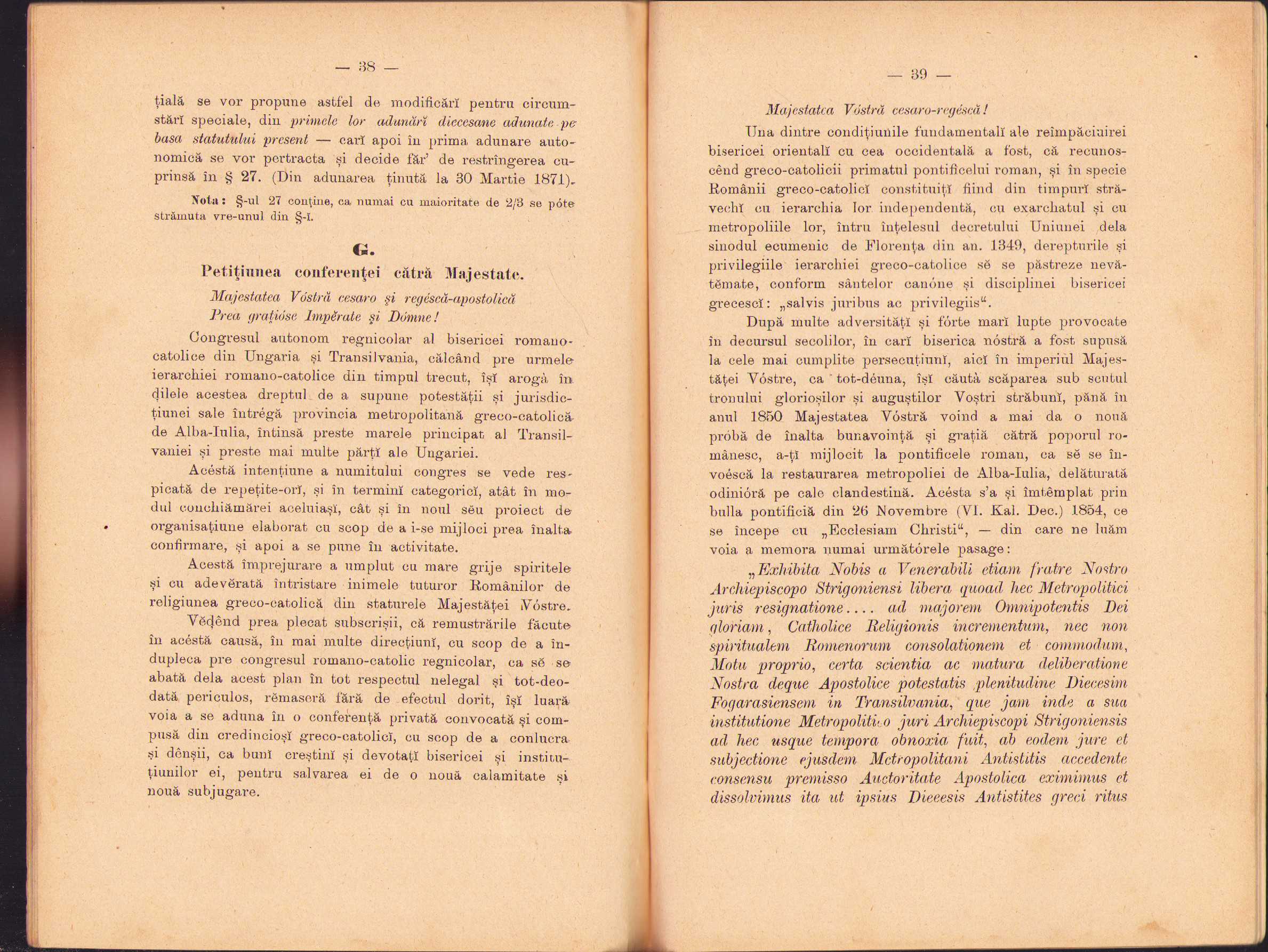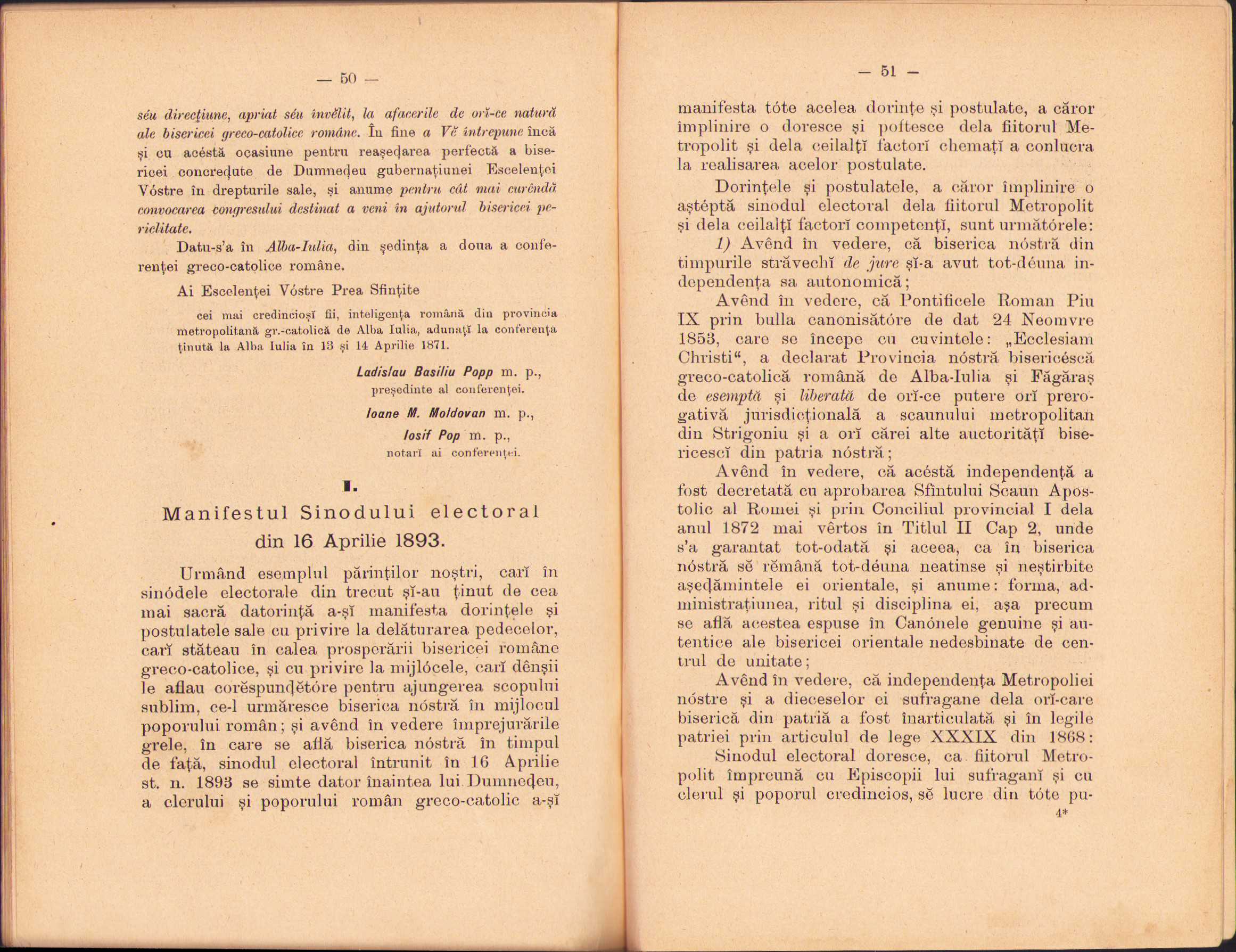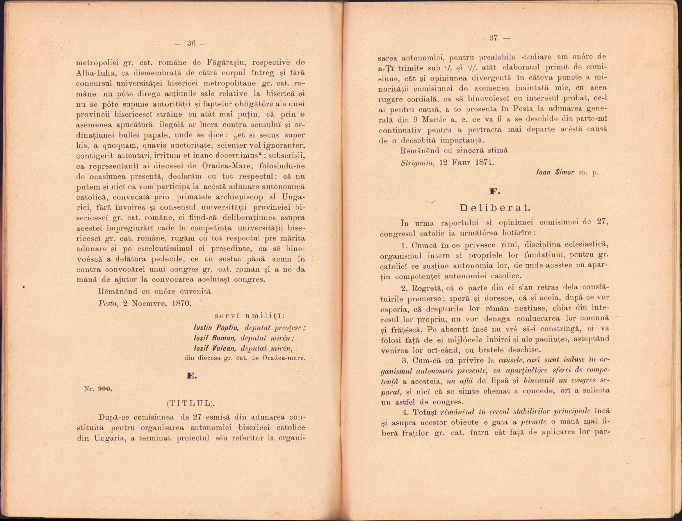 Autonomia catolică din Ungaria și periculul ce amenință printr-însa Independința Metropoliei Greco-Unite de Alba Iulia, memorial scris de un fiiu credincios al bisericei sale, 1897, Brașov, Tipografia Mureșianu