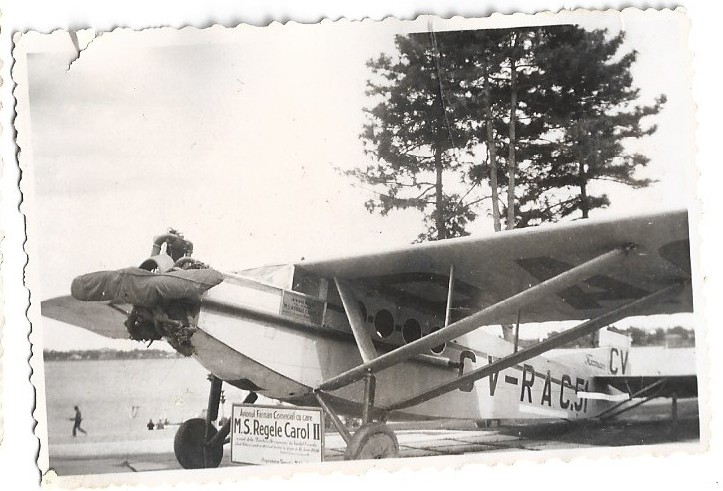 Avionul Farman Comercial cu care Regele Carol al II-lea a aterizat forțat la Vadu Crișului, județul Bihor la 6 iunie 1930, expus în 1936 la București.