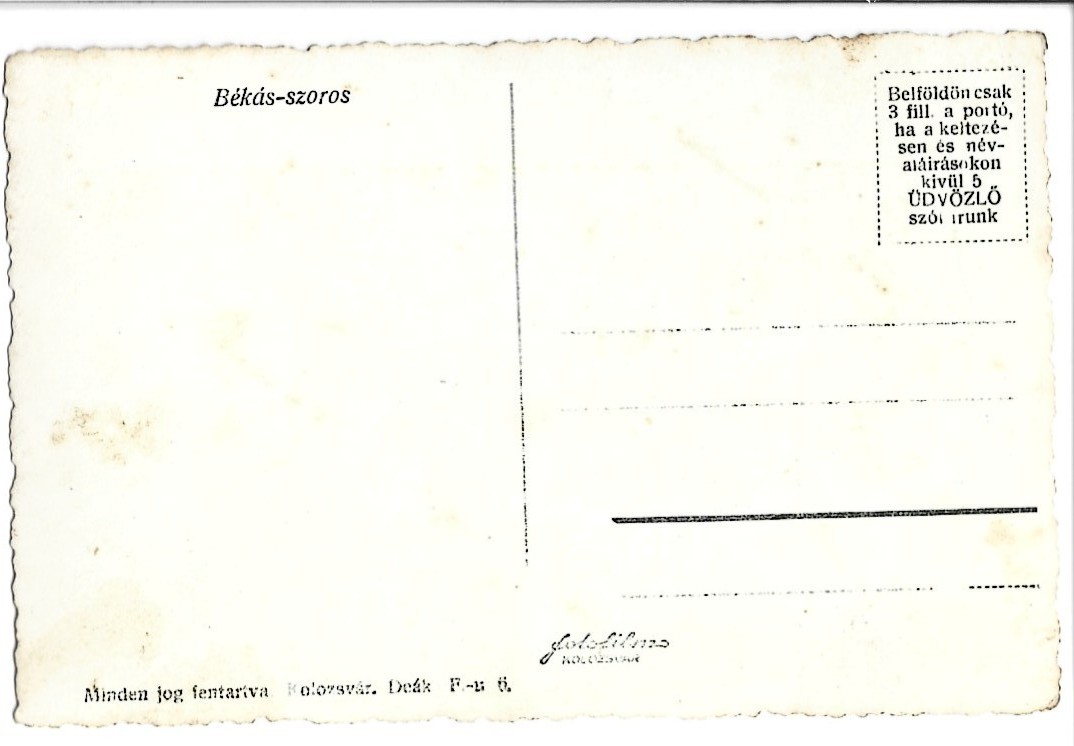 Békás-szoros, carte poștală, Cheile Bicazului.