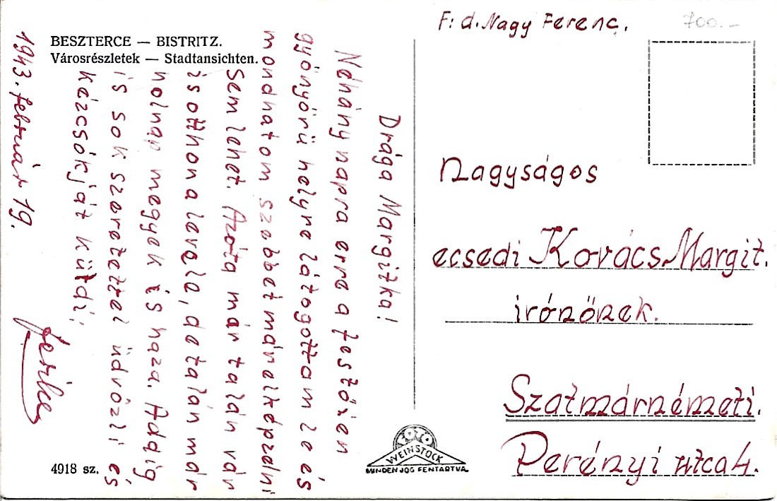 Beszterce – Bistritz, Városrészletek – Stadtansichten, carte poștală, Bistrița.