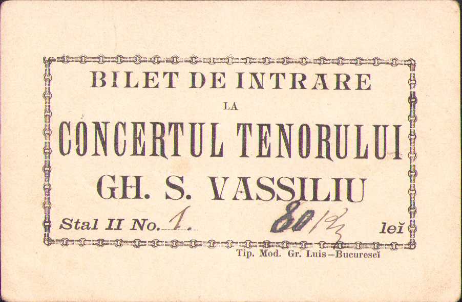 Bilet de intrare la concertul tenorului Gh. S. Vassiliu