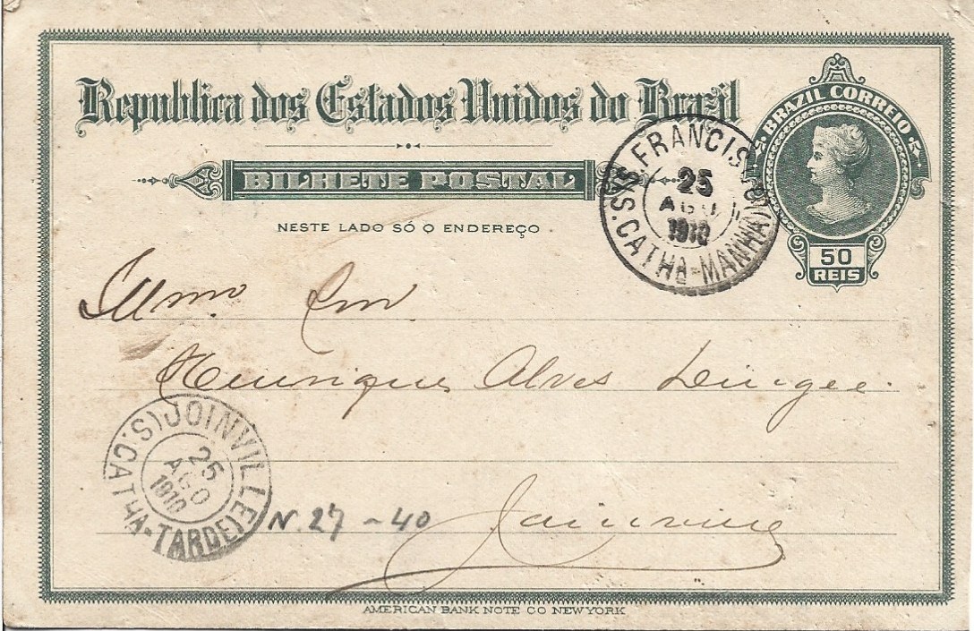 Bilhete postal 50 reis Republica dos Estados Unidos do Brazil, 1910.