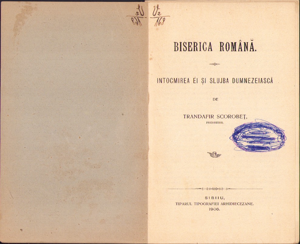Biserica română – întocmirea ei și slujba dumnezeiască de presbiter Trandafir Scorobeț, 1906, Sibiu