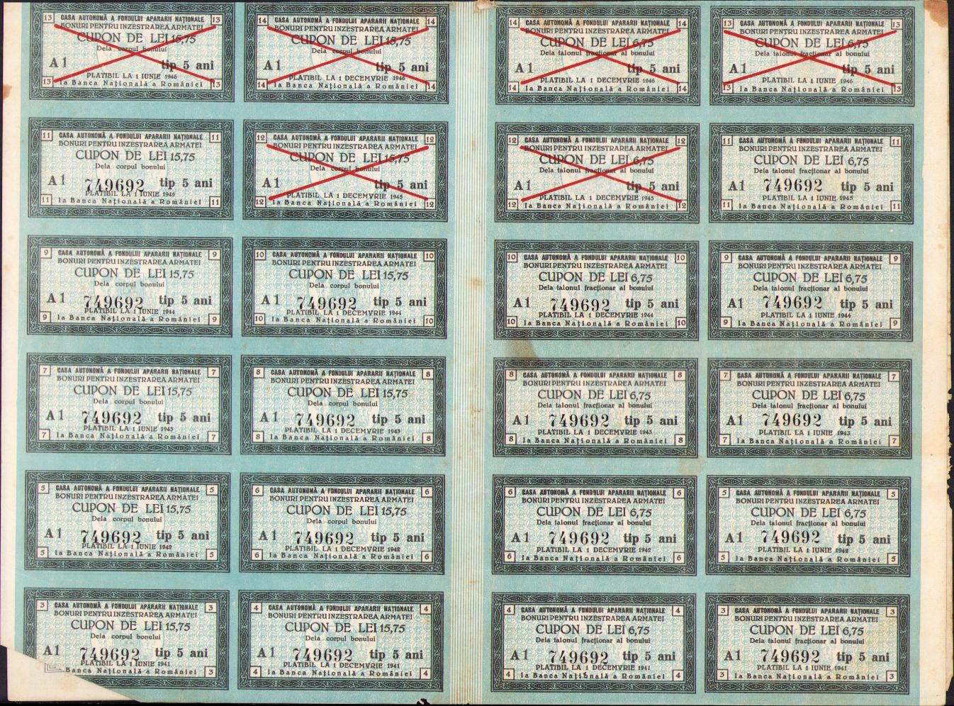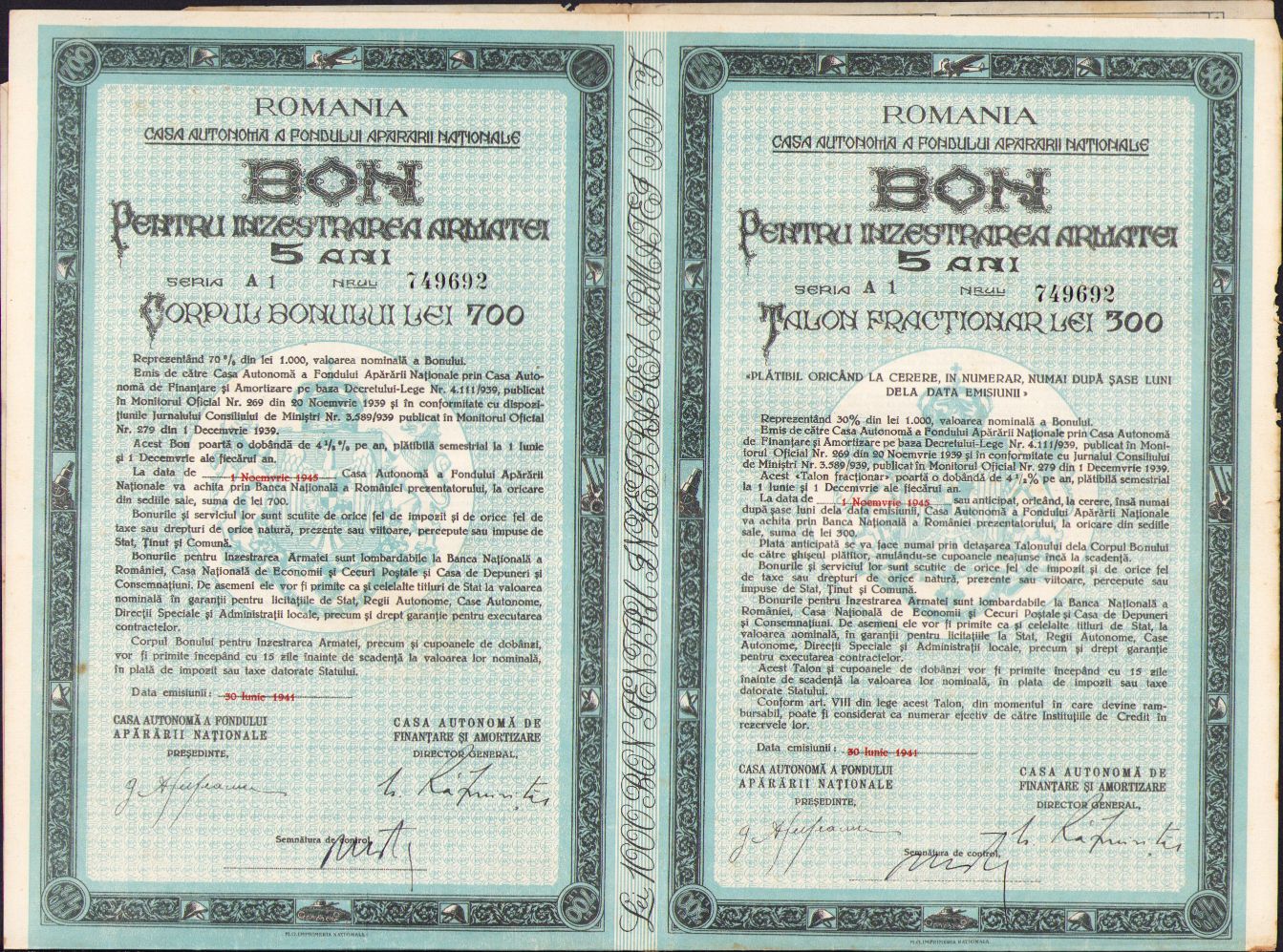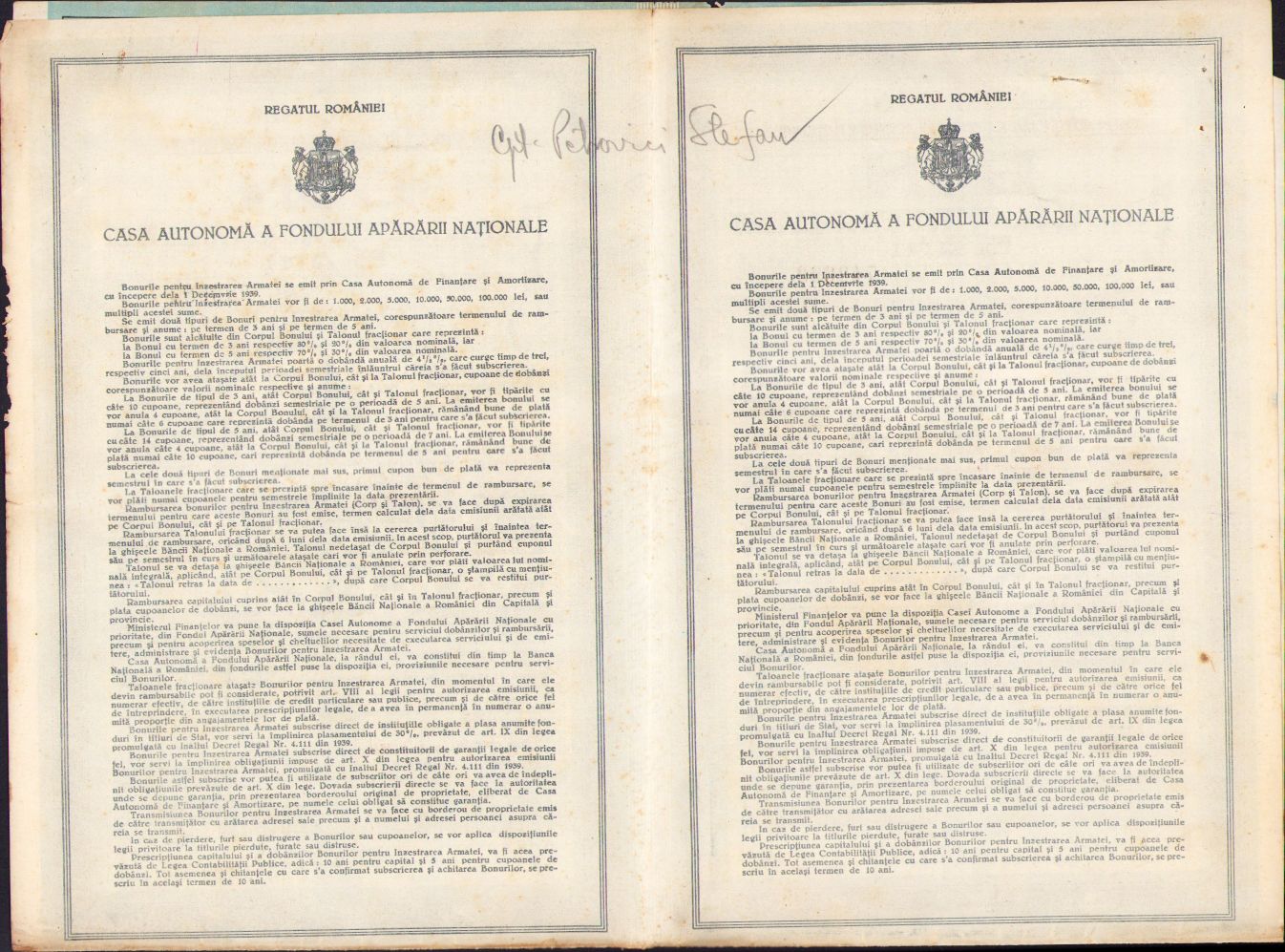 Bon pentru înzestrarea armatei 5 ani de 1000 lei.