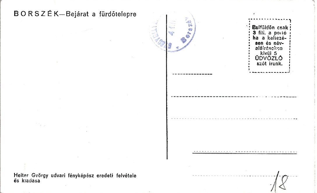 Borszék, Bejárat a fürdőtelepre, carte poștală, Borsec