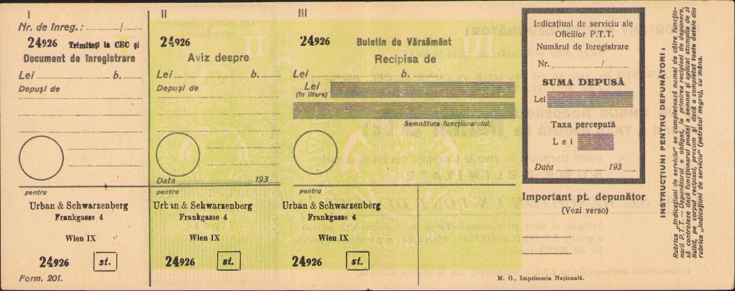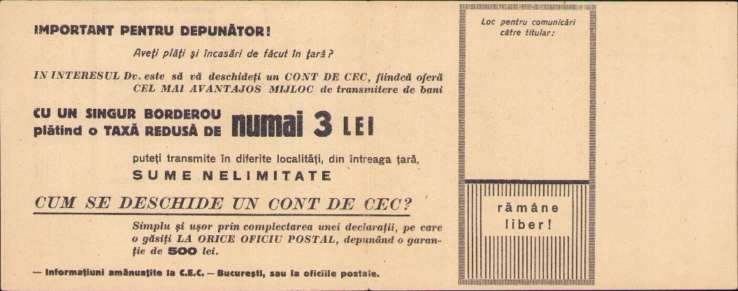 Buletin de vărsământ CEC, România, perioada regalității.