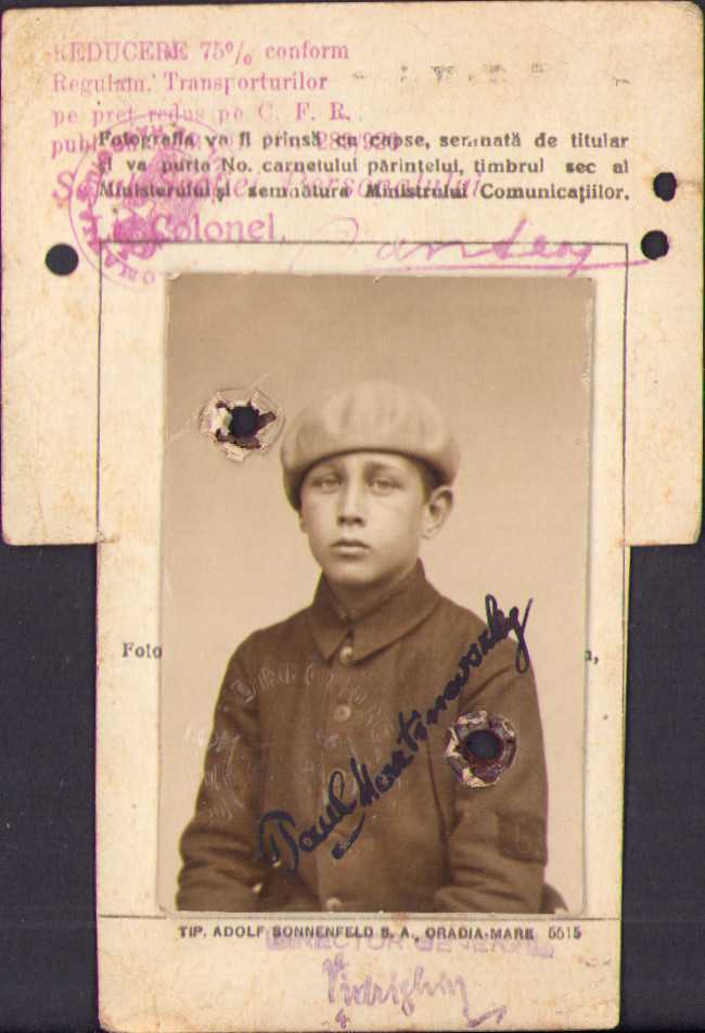 Carnet de identitate CFR, 1929, fiul colonelului Martinovsky.