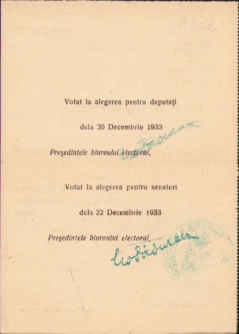 Carte de alegător, România, 1933.