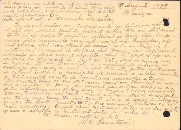 Carte poștală adresată lui Octavian Lupaș, Arad, istoric, director al Căminelor Culturale din județul Arad, secretar al Baroului Avocaților din Arad, viitor ajutor de primar (1941-1943) și primar al Aradului (1943-1944) de către Ioan C. Demetrescu, aflat la cursul de străjerie de la Centrul Străjeresc de la Breaza. Ca ipoteză de verificat, Ioan C. Demetrescu ar putea fi învățător la Pleșcuța, județul Arad. Circulată Breaza-Arad.