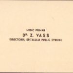 Cartea de vizită a dr. Zoltán Vass, directorul Spitalului Public Evreiesc din Cluj, databilă în intervalul anilor 1946-1948.