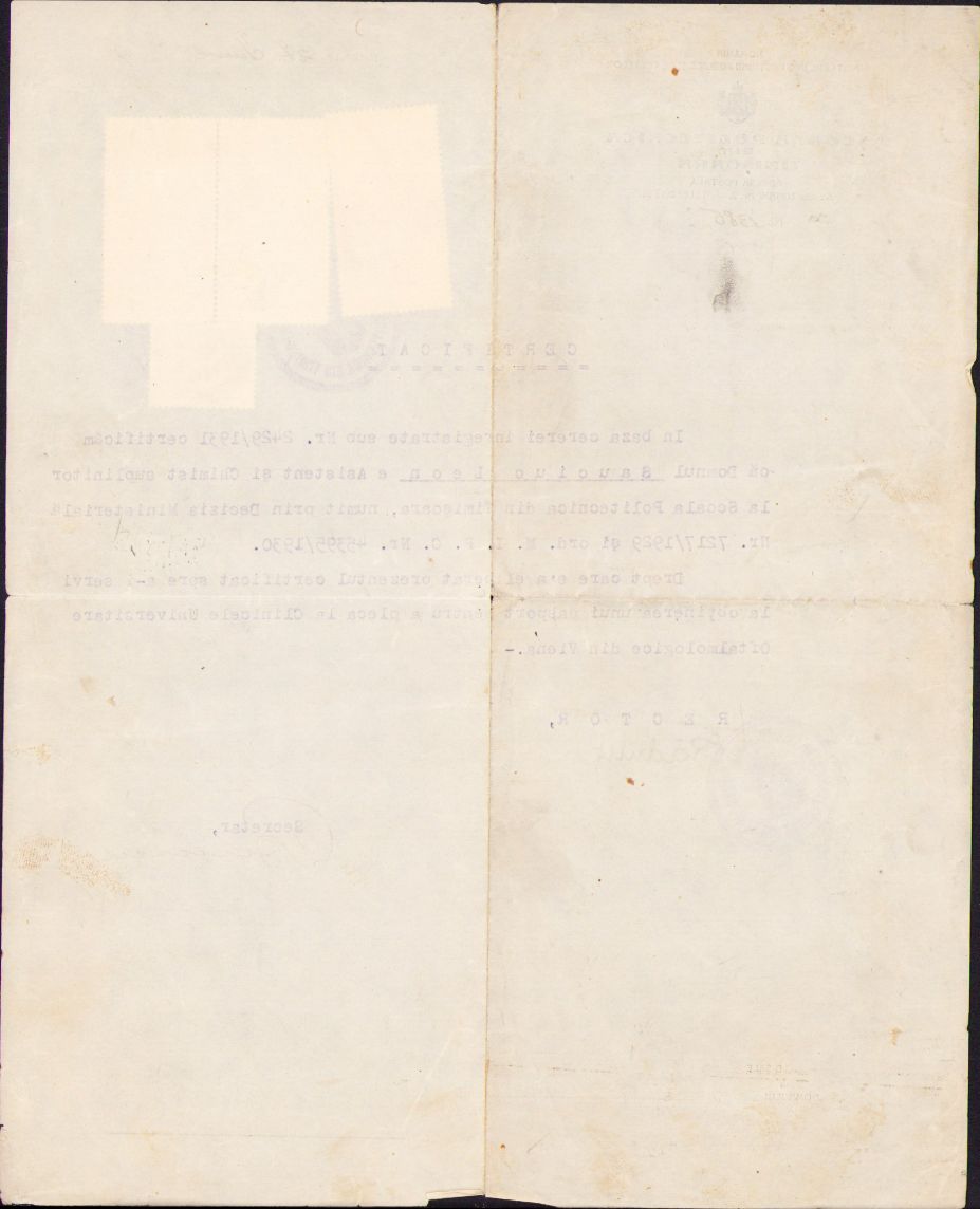 Certificat care confirmă gradul universitar de asistent al lui Leon Sauciuc, 1931, Politehnica Timișoara.