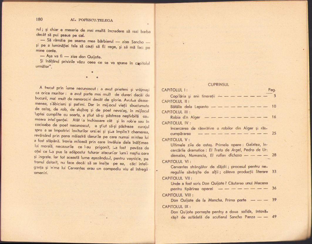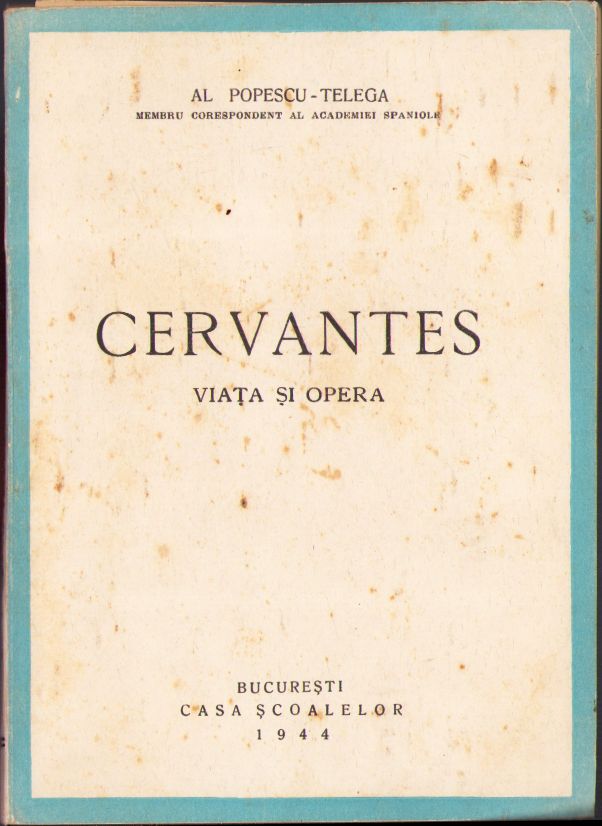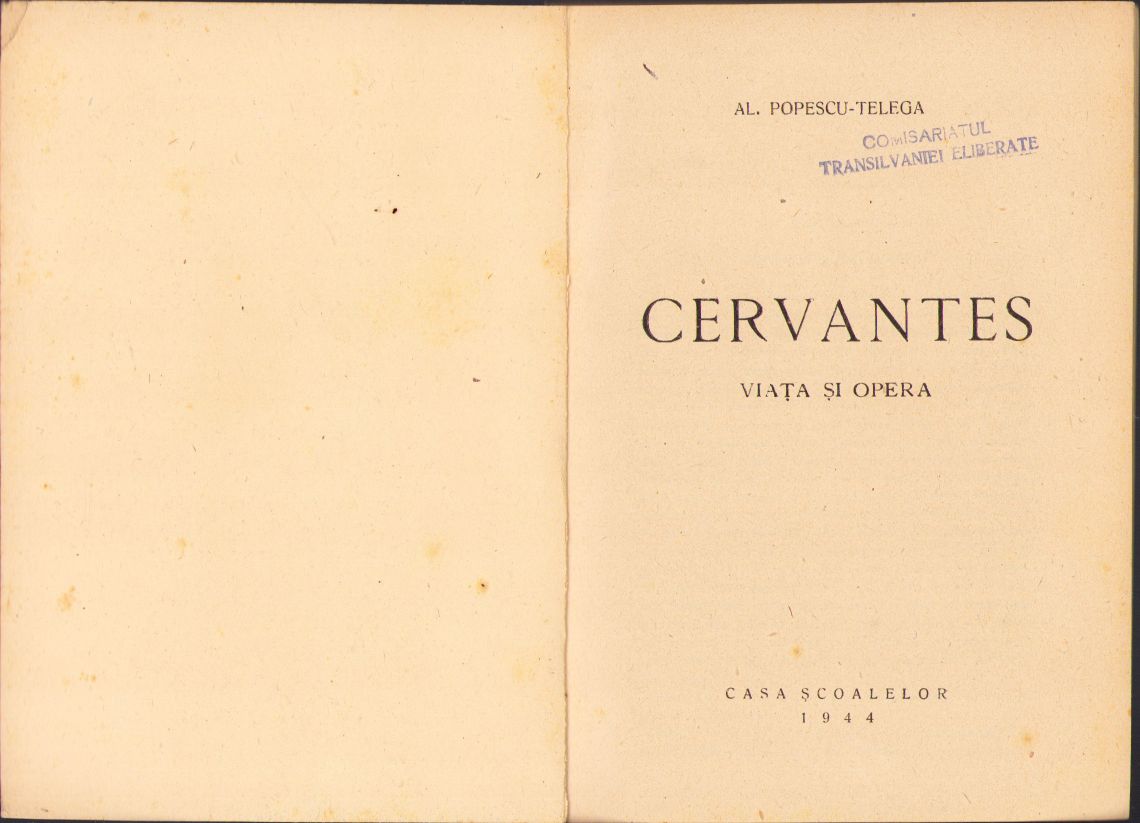 / Cervantes. Viața și opera de Al. Popescu-Telega, 1944, Editura Casa Școalelor, București