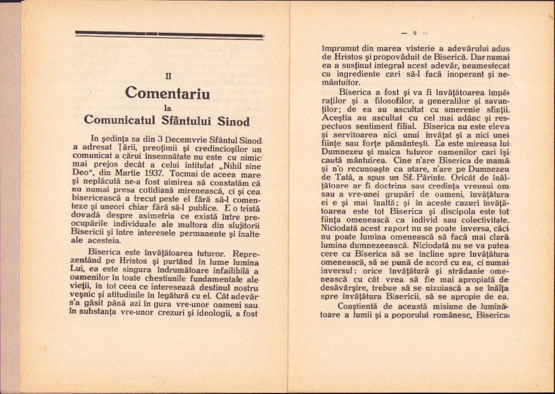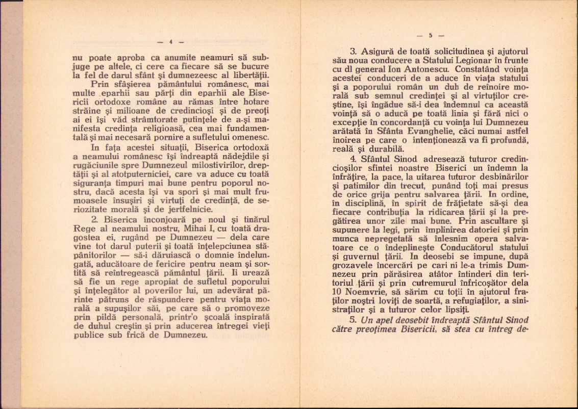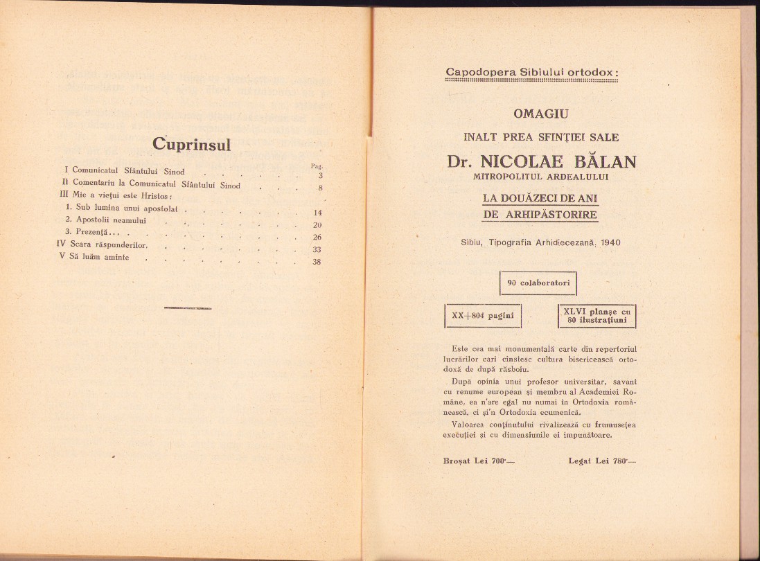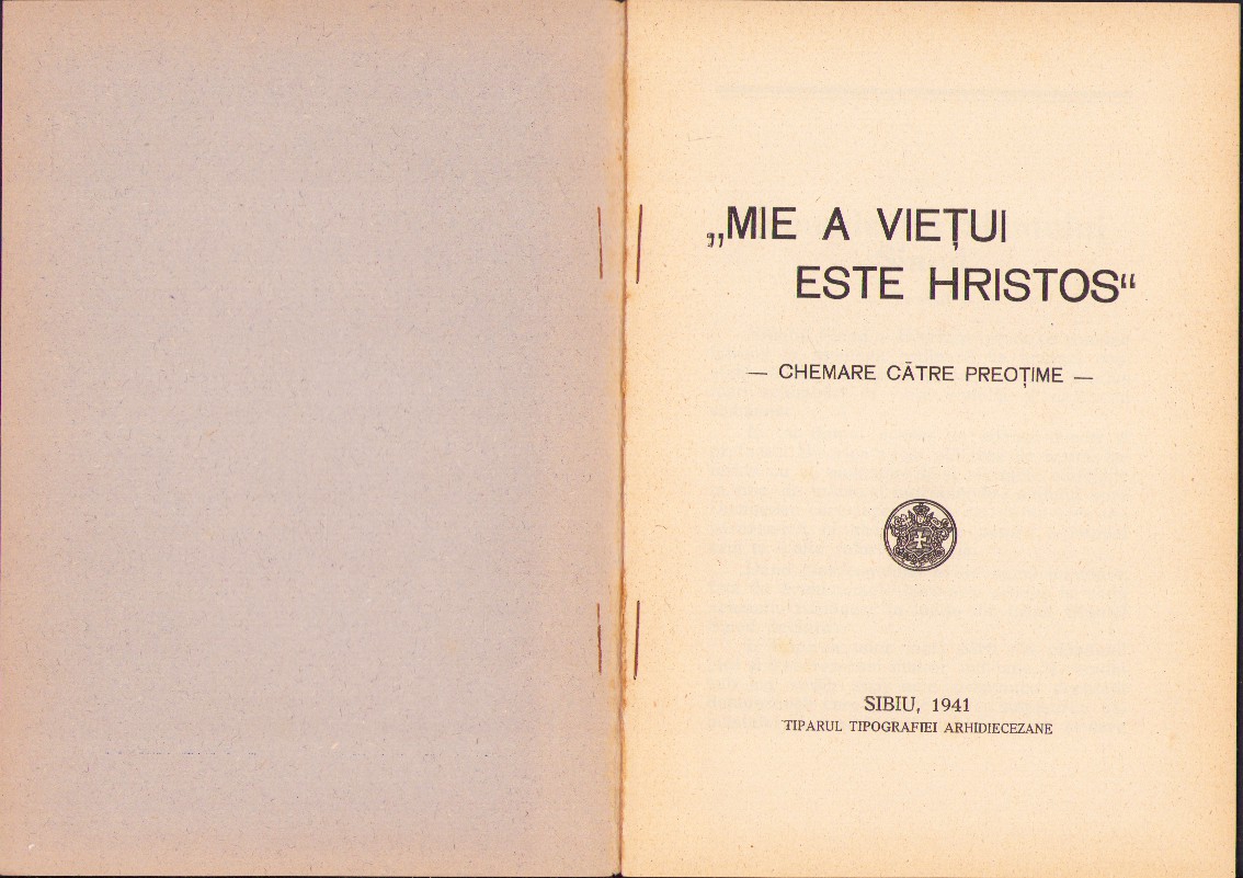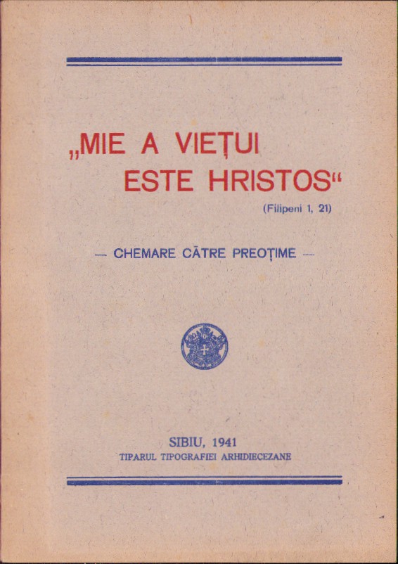 Chemare către preoțime, 1941, a Sfântului Sinod, cu declararea dragostei acestuia față de Regele Mihai și a întregii solicitudini și ajutor către conducerea Statului Legionar în frunte cu generalul Ion Antonescu, Sibiu, Tiparul tipografiei arhidiecezane.