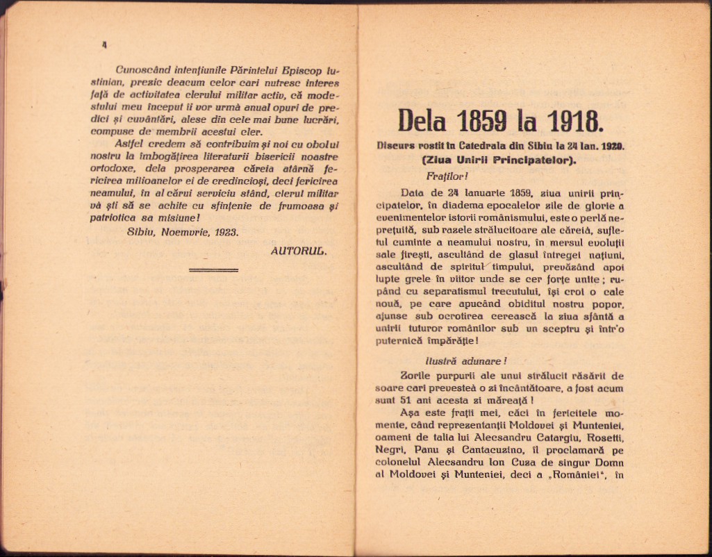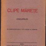 Clipe mărețe – discursuri de protoiereu militar Ioan Dăncilă, 1923, ediția I, cu dedicația olografă a autorului către istoricul Ștefan Meteș și cu semnătura olografă și ex-libris a acestuia din urmă