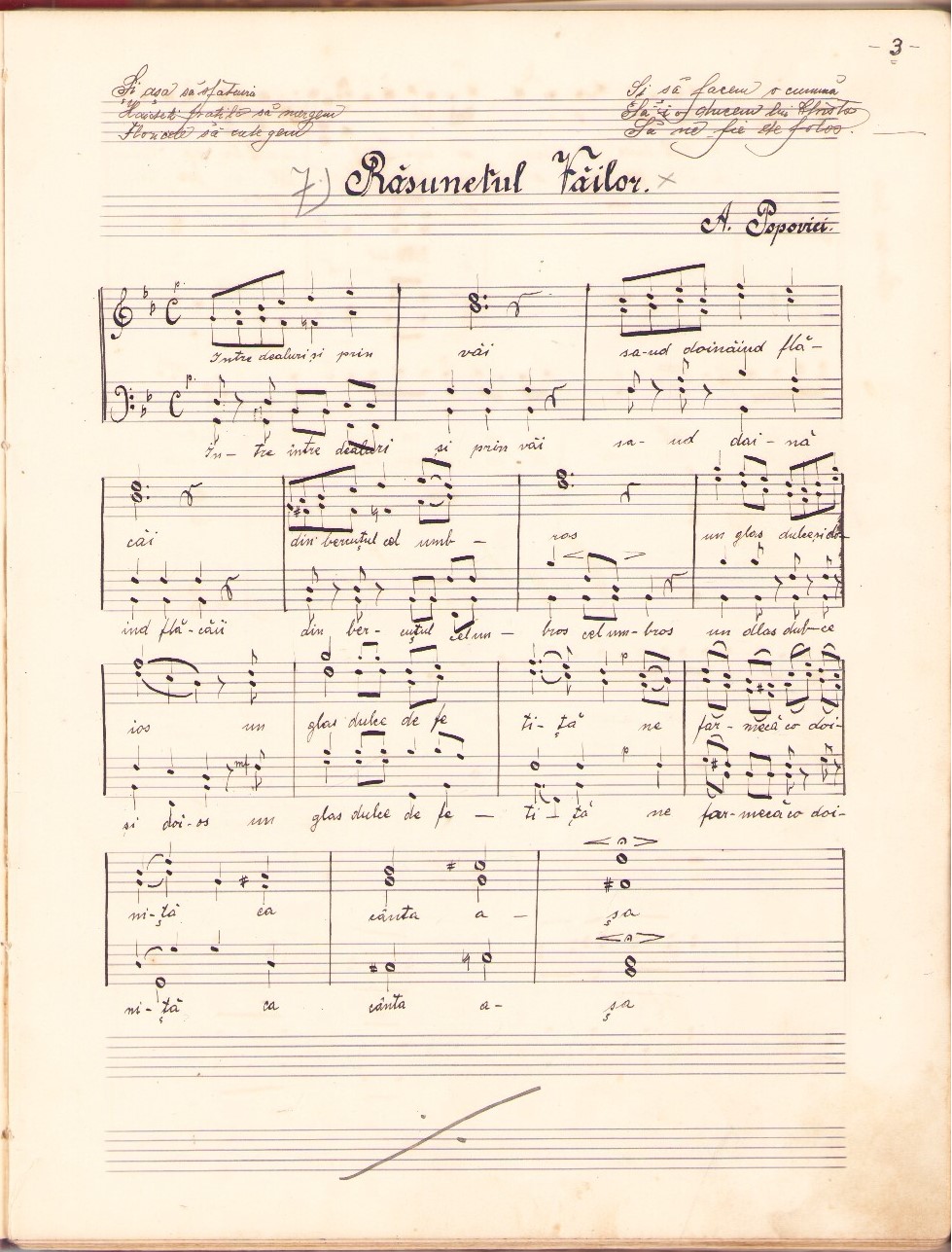 Colecțiune de note muzicale scrise olograf de Mihail Hurducaciu, conducătorului corului pedagogic, Blaj, 1907.
