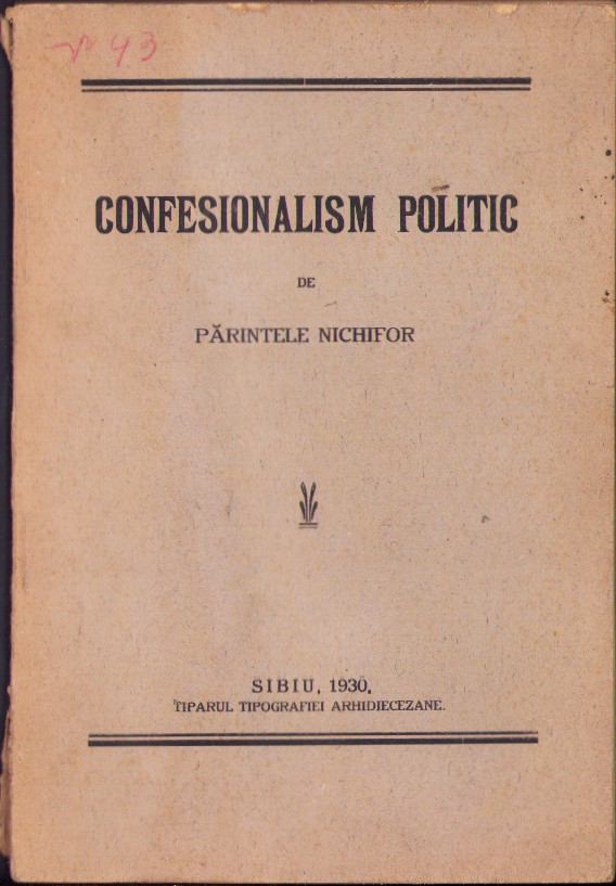 Confesionalism politic de Părintele Nichifor, 1930, Sibiu.