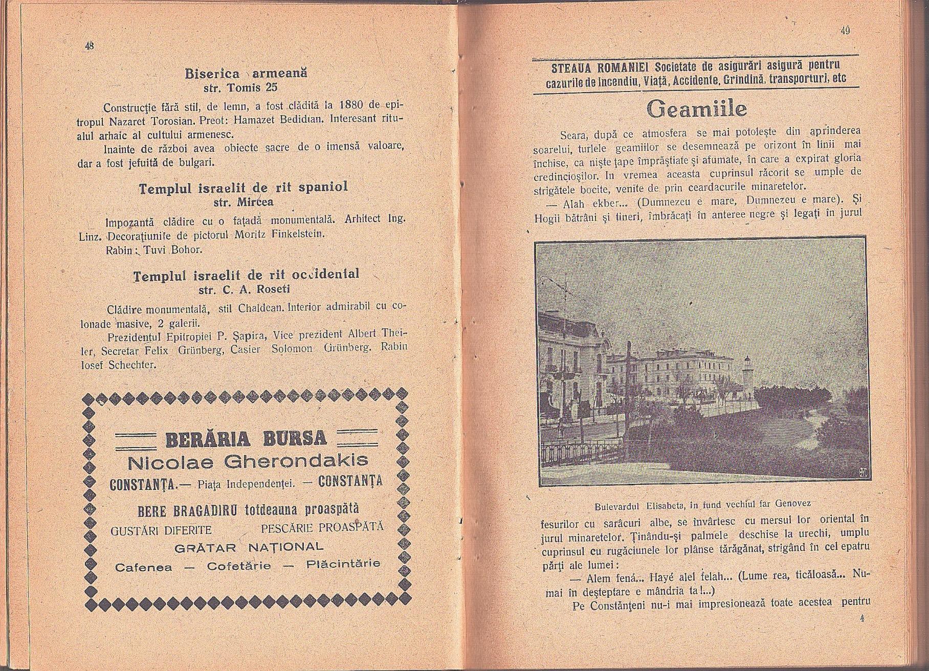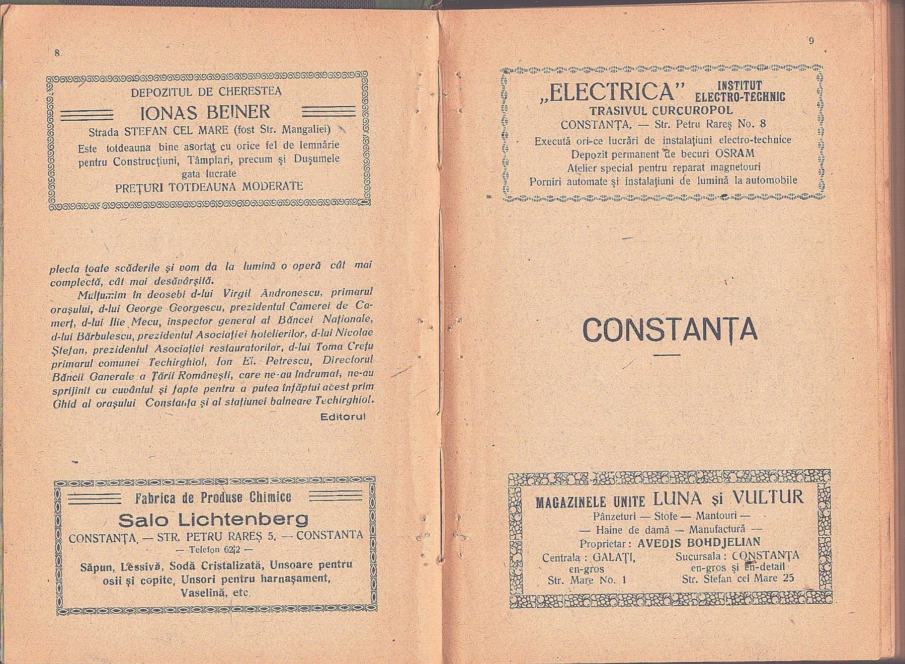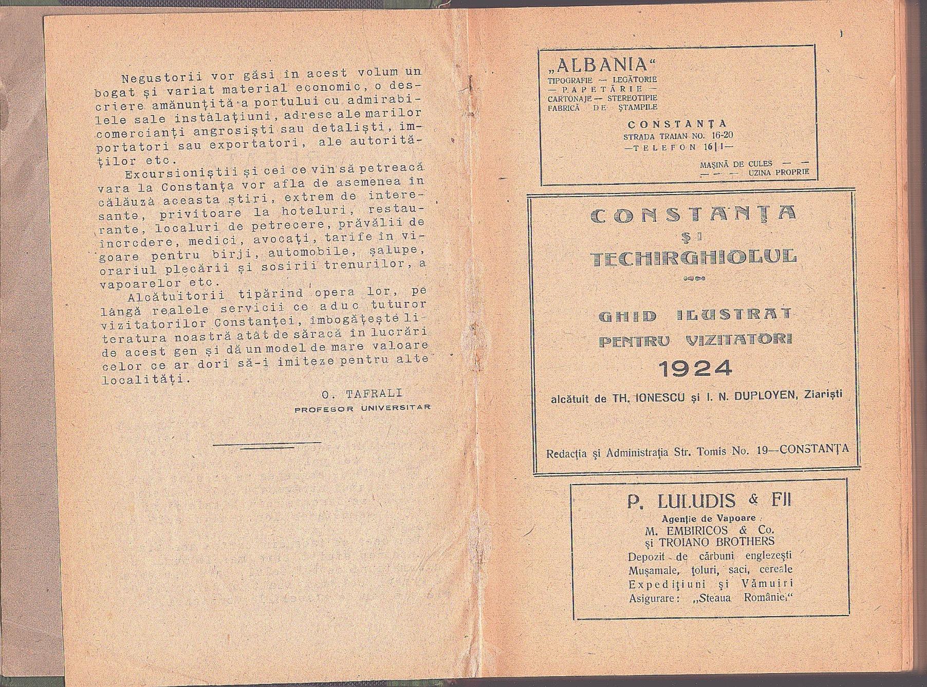 Constanța și Techirghiolul, ghid ilustrat pentru vizitatori, 1924, întocmit de Th Ionescu și I N Duployen, Constanța.