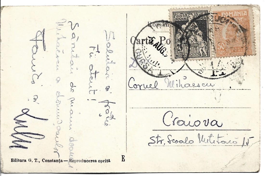 Constanța, Vederea orașului spre port, carte poștală circulată Craiova.
