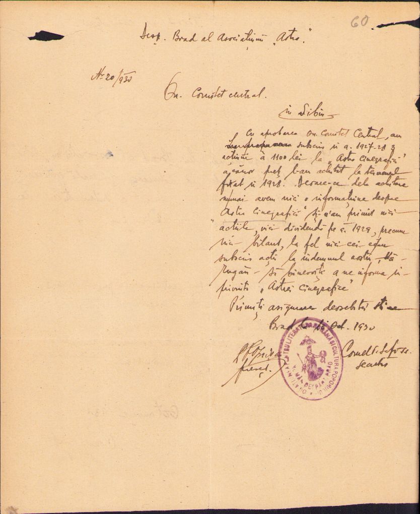 Convocare ASTRA Brad județul Hunedoara, 1930, cu ștampilă ASTRA.