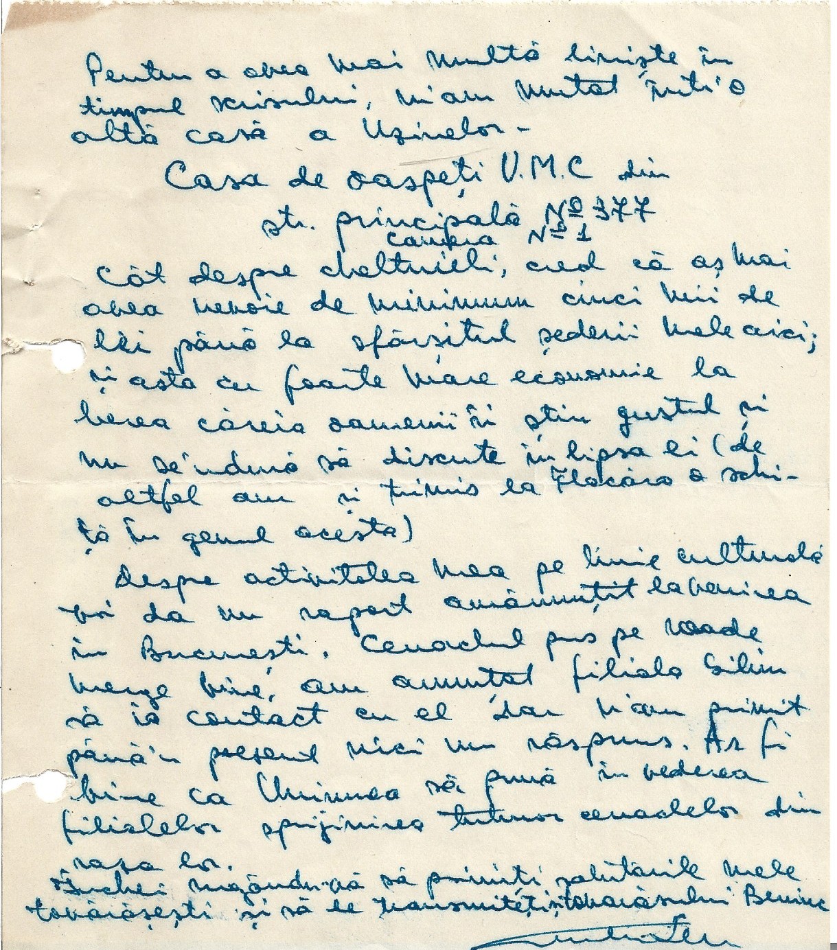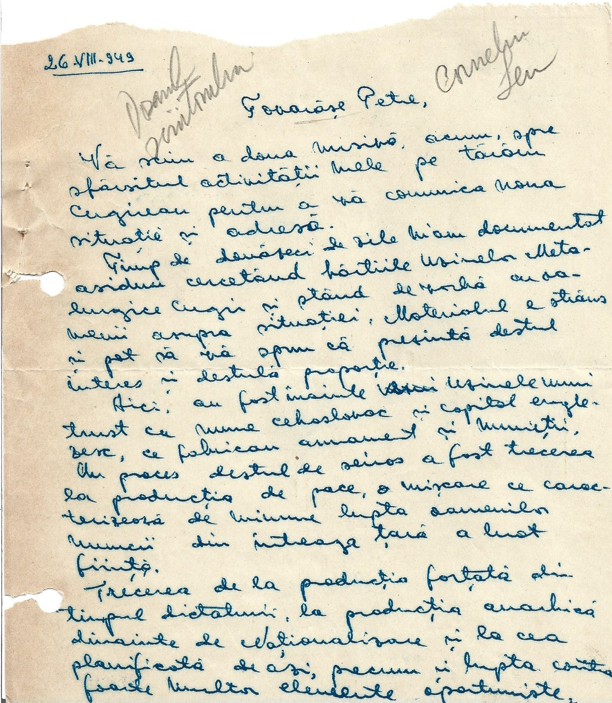 Corneliu Leu, scrisoare olografă semnată, 1949.