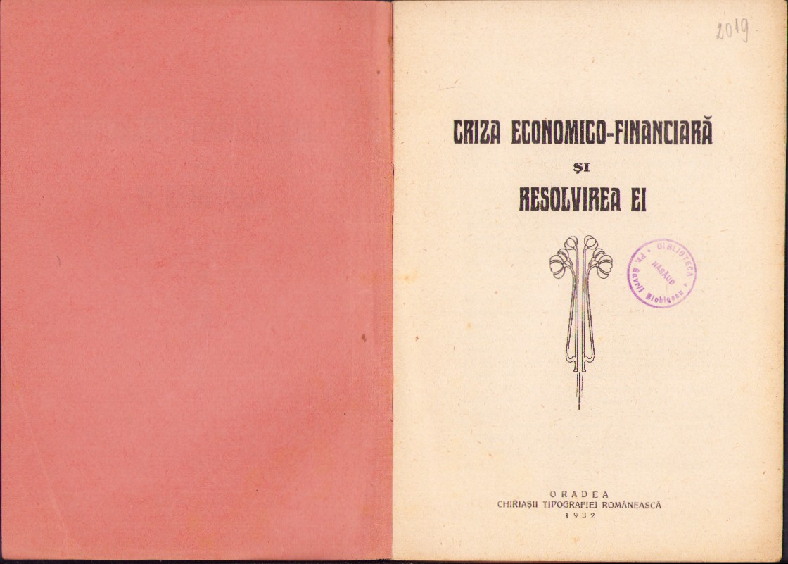 Criza economico-financiară și resolvirea ei de Valeriu Traian Frențiu Episcop, 1932, Oradea, Chiriașii Tipografiei Românească.