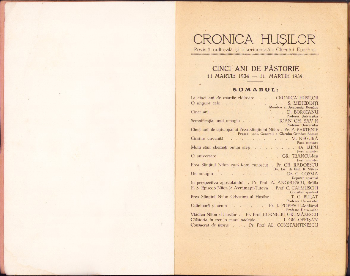 Cronica Hușilor, număr festiv închinat PS Episcop Nifon Criveanu cu prilejul împlinirii a cinci ani de păstorie 11 Martie 1934 – 11 Martie 1939, cu semnătura olografă a lui Ștefan Meteș și ex-libris-ul său, Tipografia și Librăria George Cerchez, Iași.
