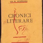 Cronici literare de Ion M Negreanu, 1938, Editura Făclia, Craiova, volumul de debut al autorului cu dedicația sa olografă, către preotul Gheorghe Sachelarie din Drăgășani, Vâlcea, profesor, revizor eparhial.
