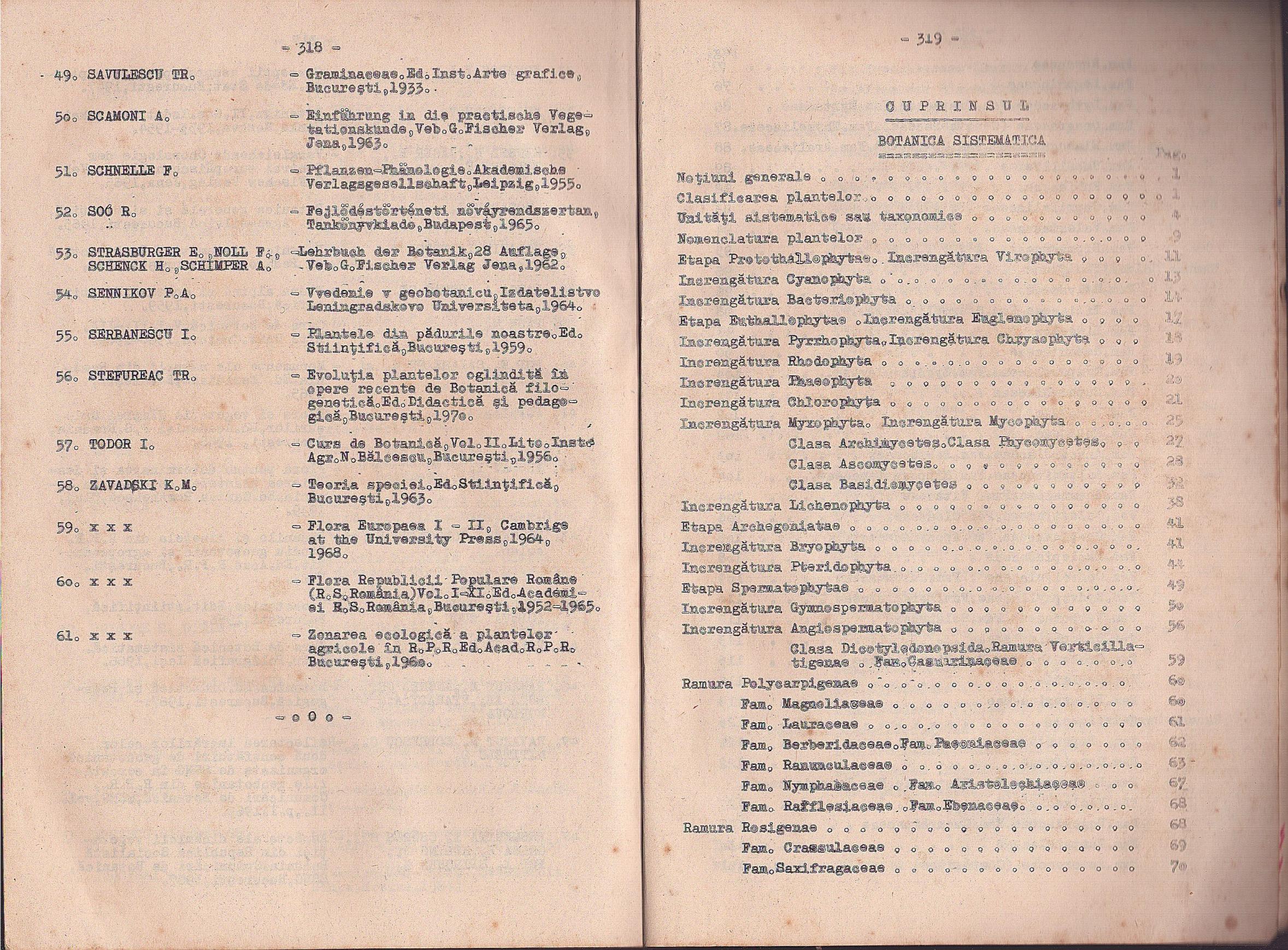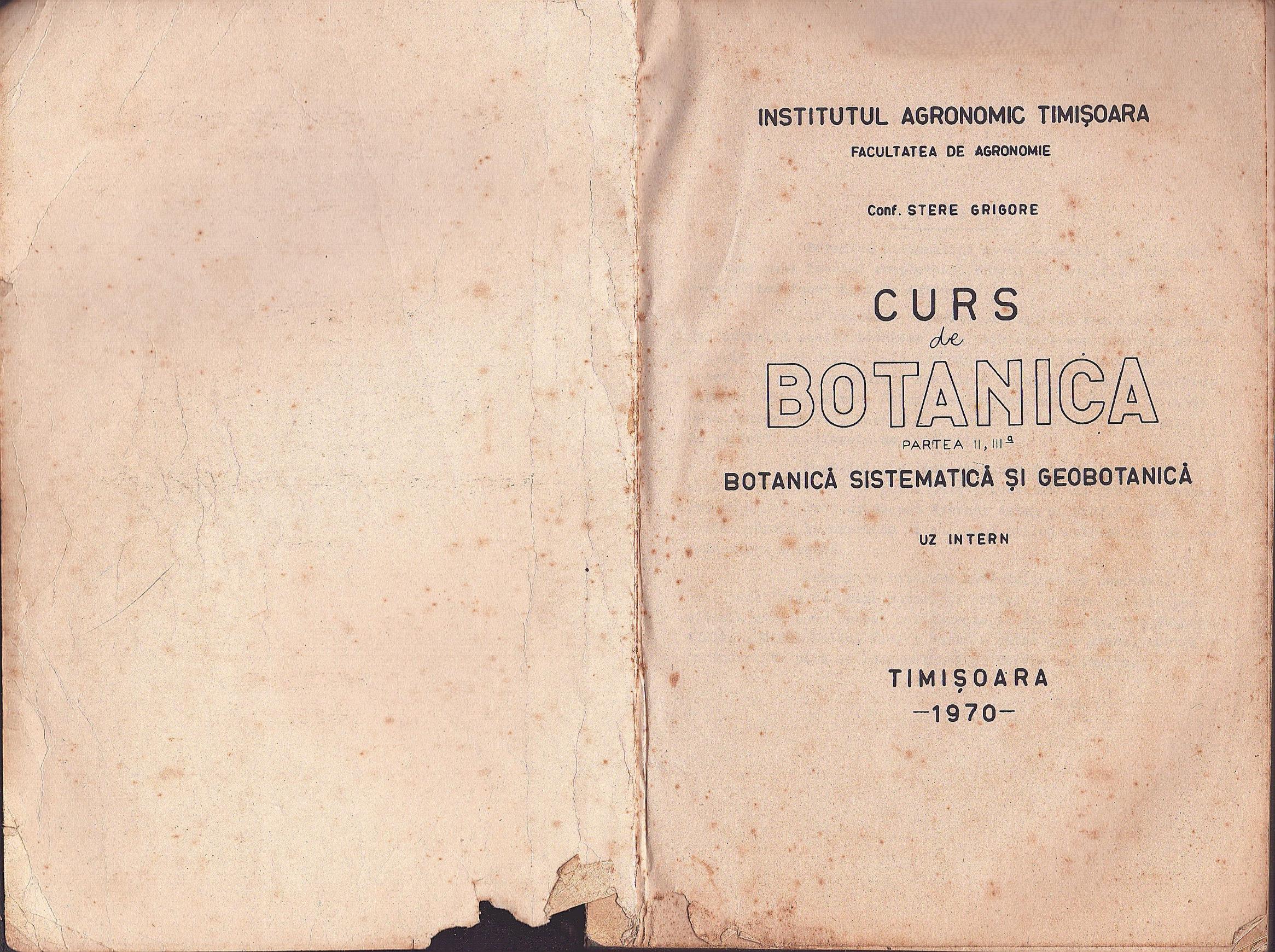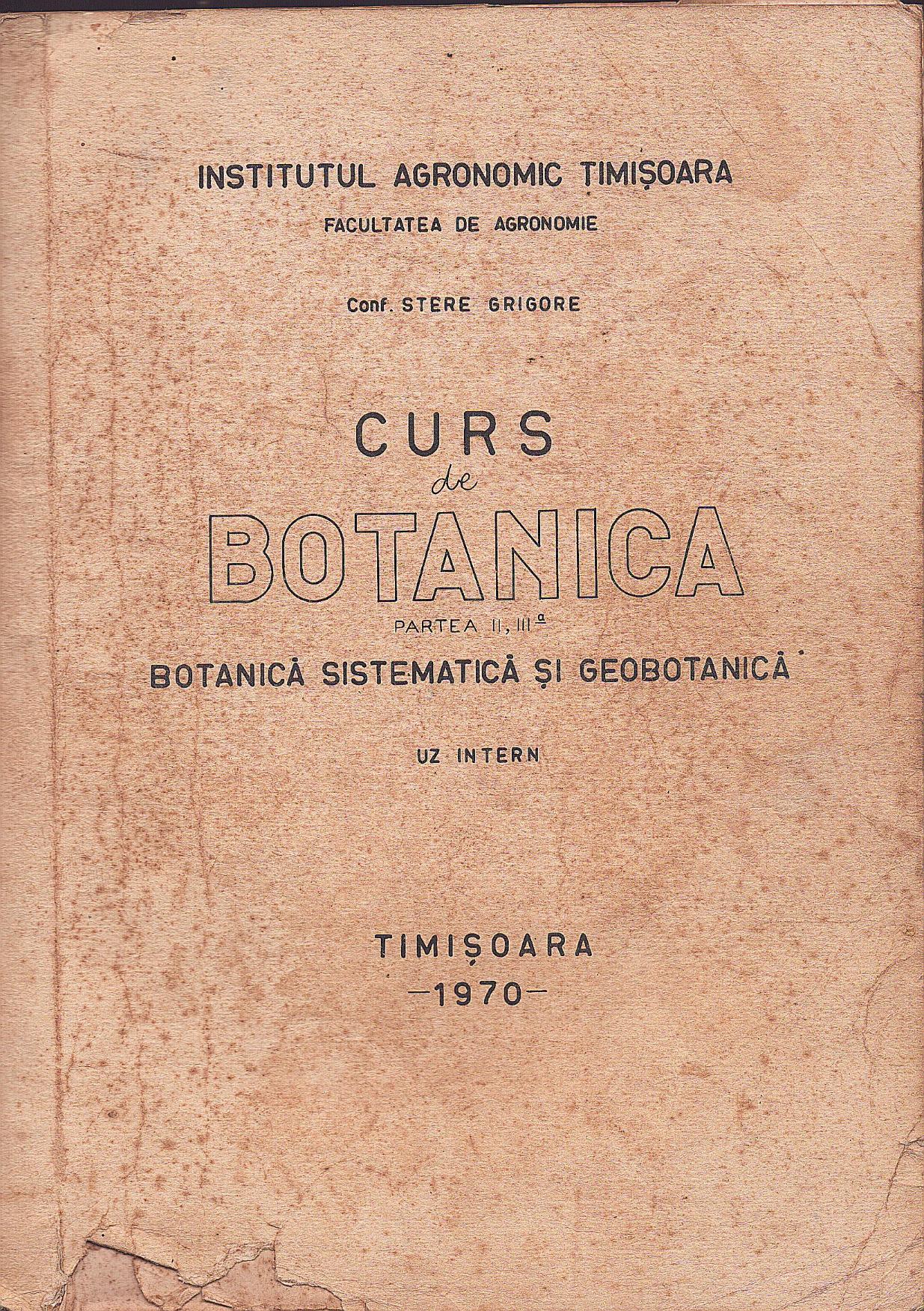 Curs de botanică, botanică sistematică și geobotanică de Stere Grigore, 1970, Institutul Agronomic Timișoara.