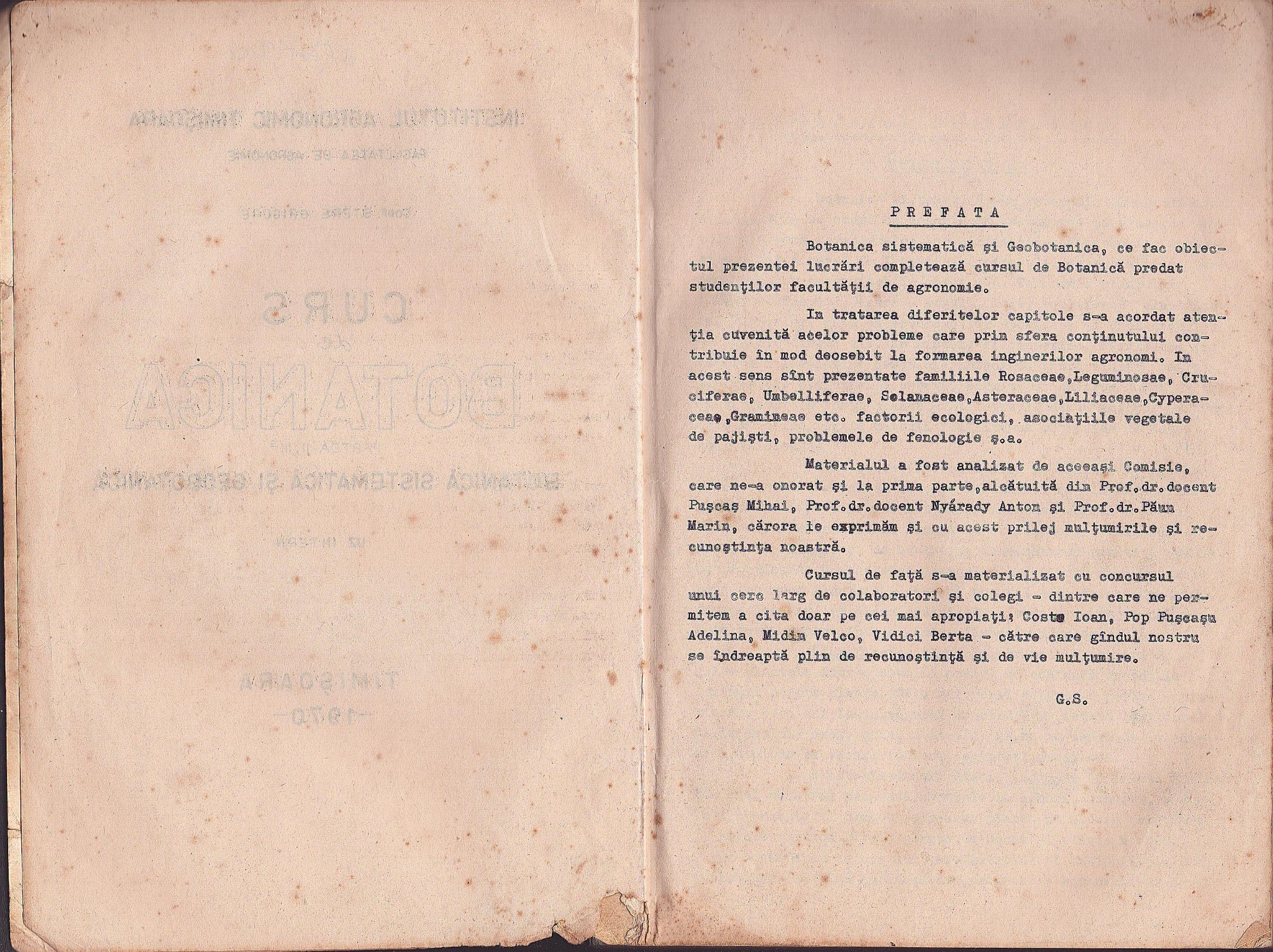 Curs de botanică, botanică sistematică și geobotanică de Stere Grigore, 1970, Institutul Agronomic Timișoara