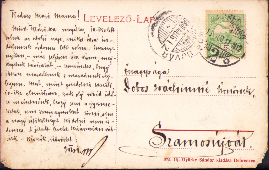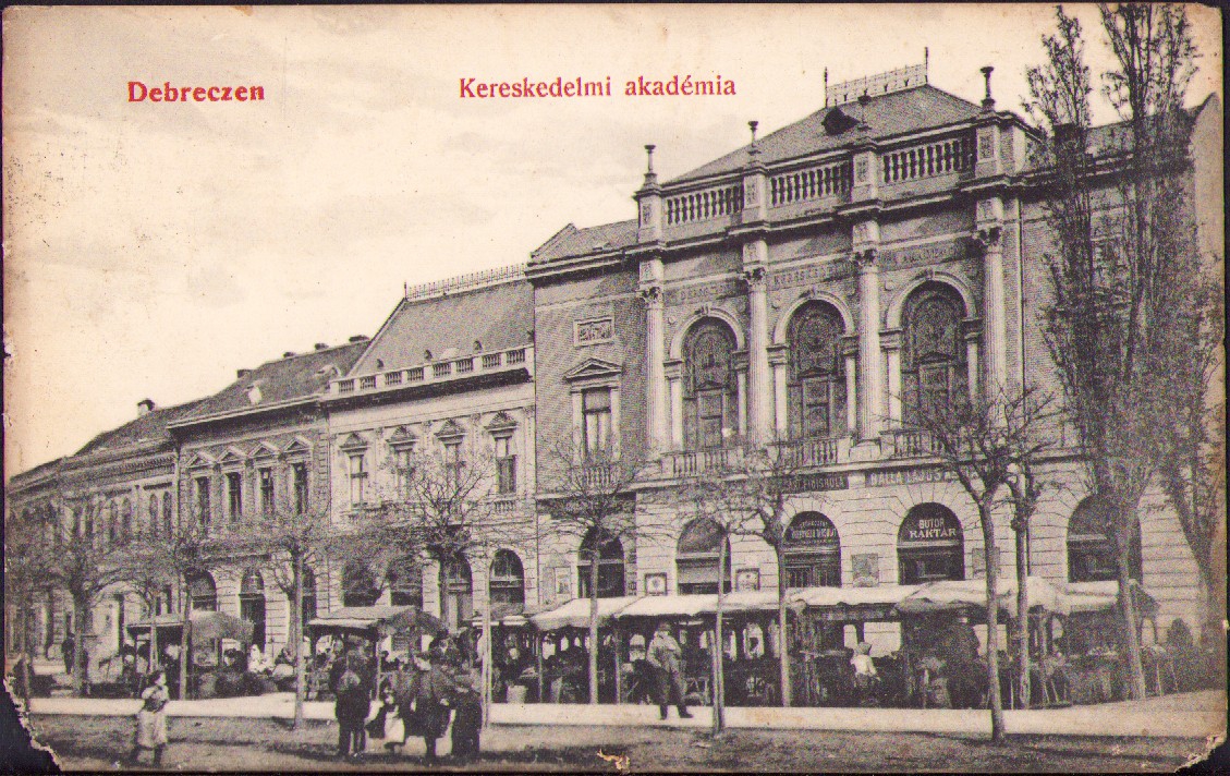 Debreczen Kereskedelmi akadémia, carte poștală, circulată Gherla.