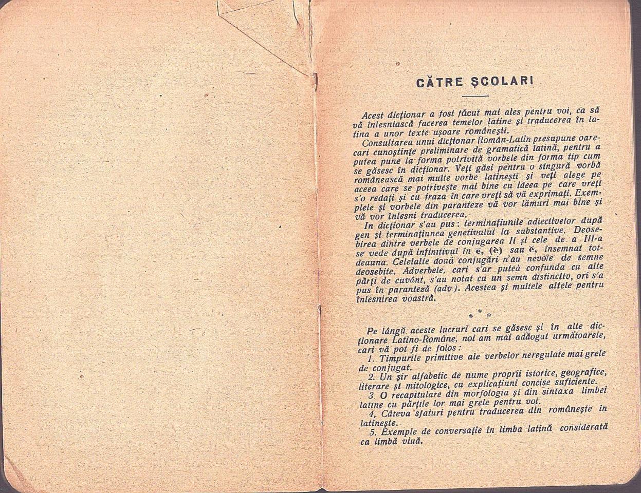 Dicționar român-latin întocmit de M Stăureanu, ediție școlară, 1924, Craiova.