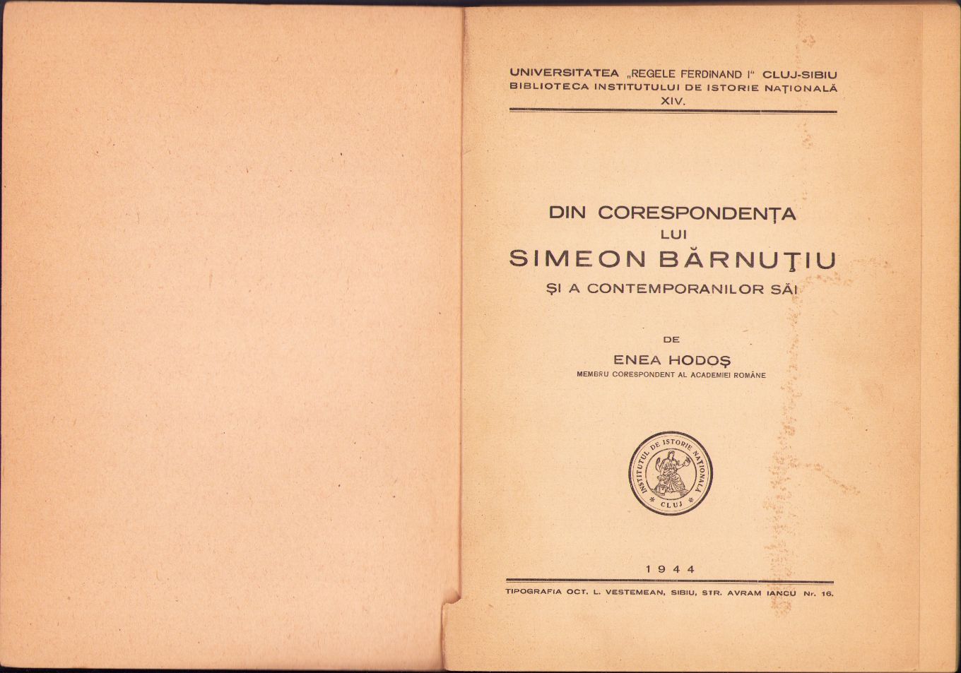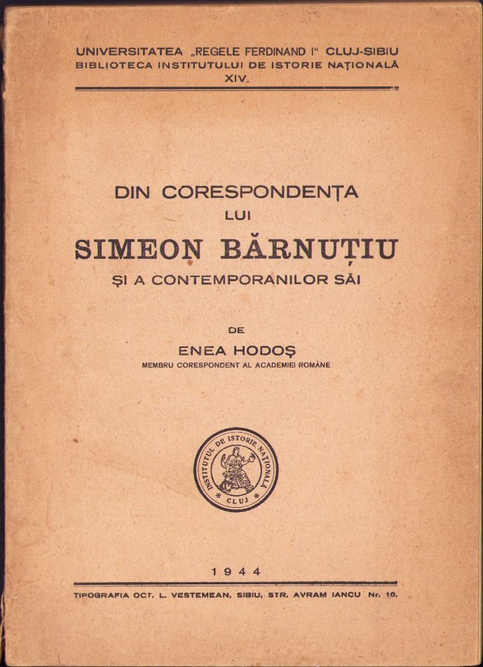 Din corespondența lui Simeon Bărnuțiu și a contemporanilor săi de Enea Hodoș, 1944, Sibiu.