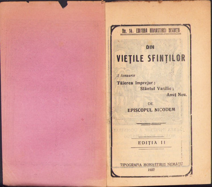 Din viețile sfinților – 1 Ianuarie – Tăierea împrejur, Sfântul Vasilie, Anul Nou de Episcopul Nicodim, 1927, Tipografia Monastirei Neamțu.