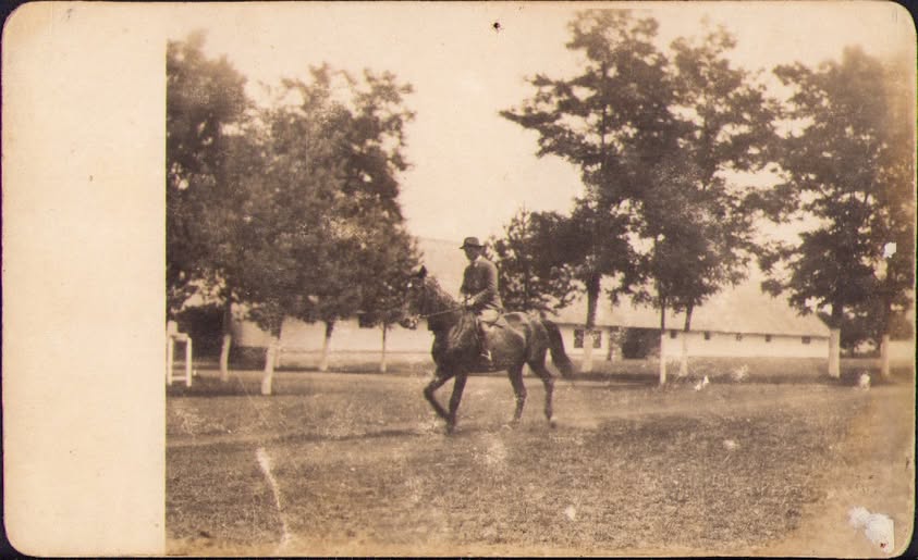 călare pe armăsarul candidat pepinier Furioso XXXI-4 (n. 1922), fotografiat în anul 1928 la Stâna.