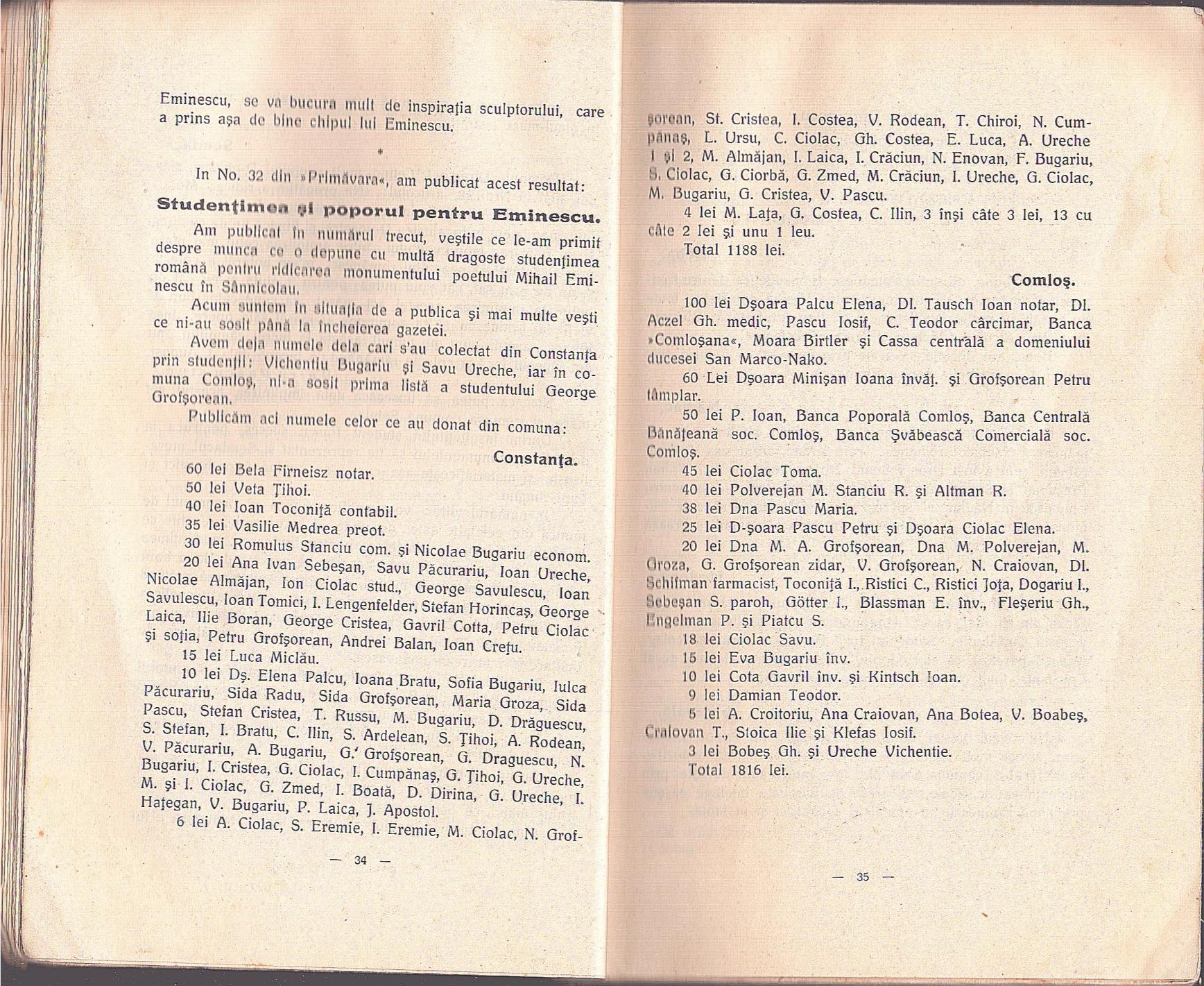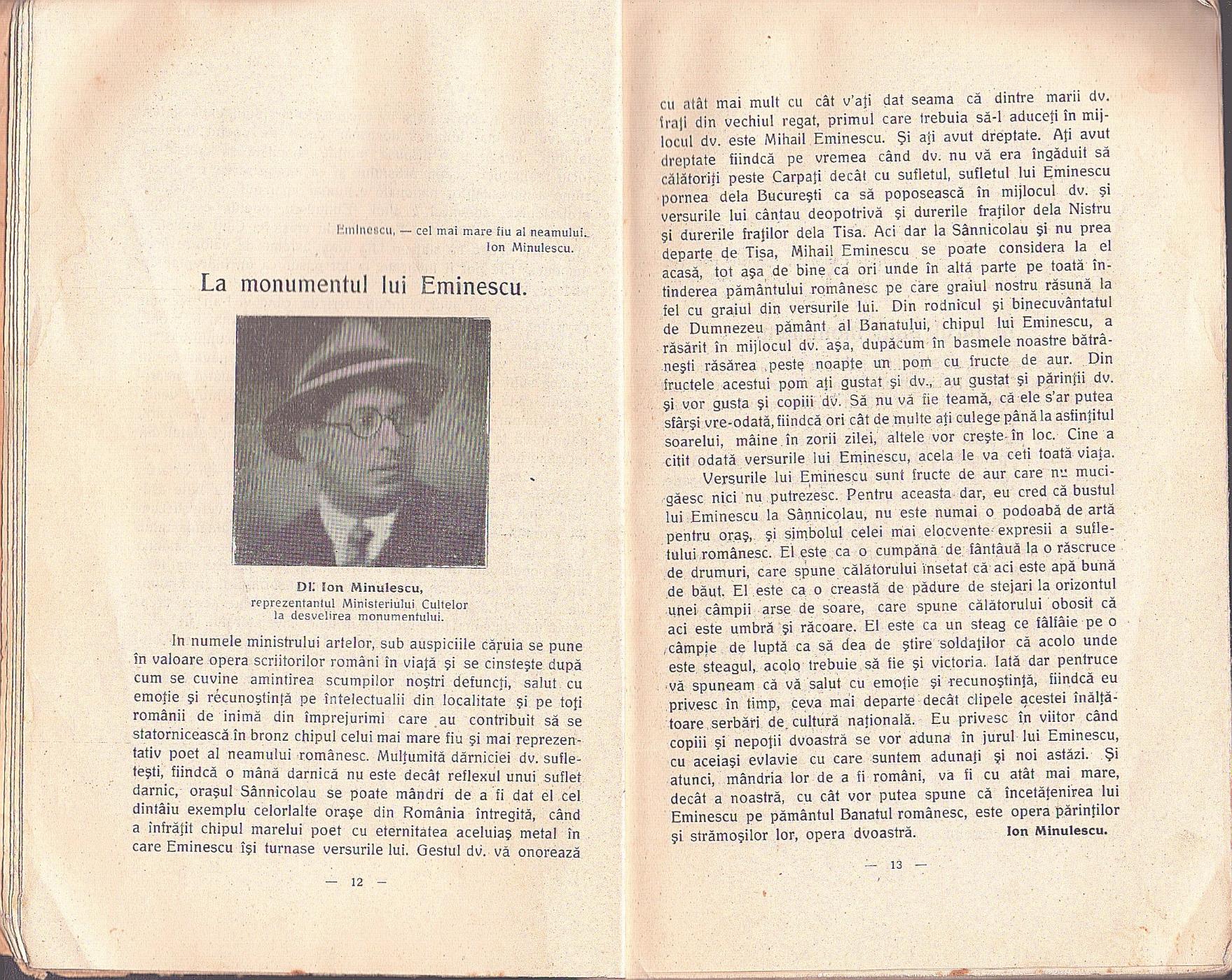 Eminescu în Banat la Sânnicolaul Mare de Teodor Bucurescu, 1928, Periam.