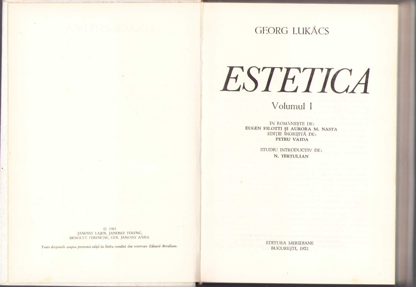 Estetica de Georg Lukács, volumul I, 1972.