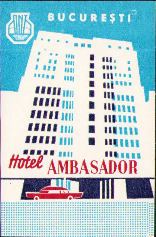 Etichetă reclamă Hotel Ambasador București ONT Carpați